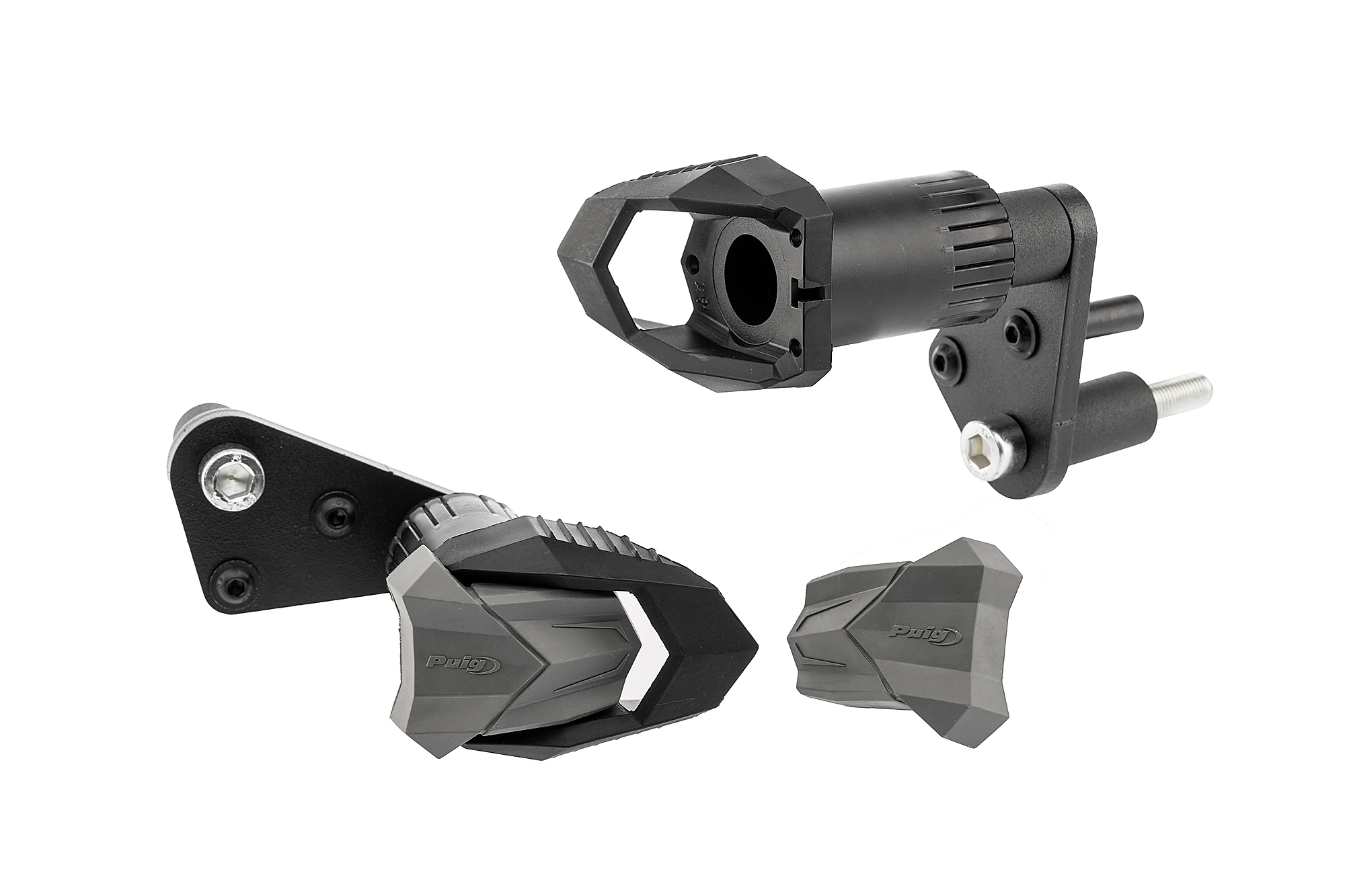 La protection est fournie avec une gomme de  caoutchouc grise par défaut, mais Puig propose une grande variété de couleurs pour s’ adapter parfaitement l'image de votre moto. En plus des pièces de rechange pour le caoutchouc, Puig propose également des pièces de rechange pour les crash pads en nylon.