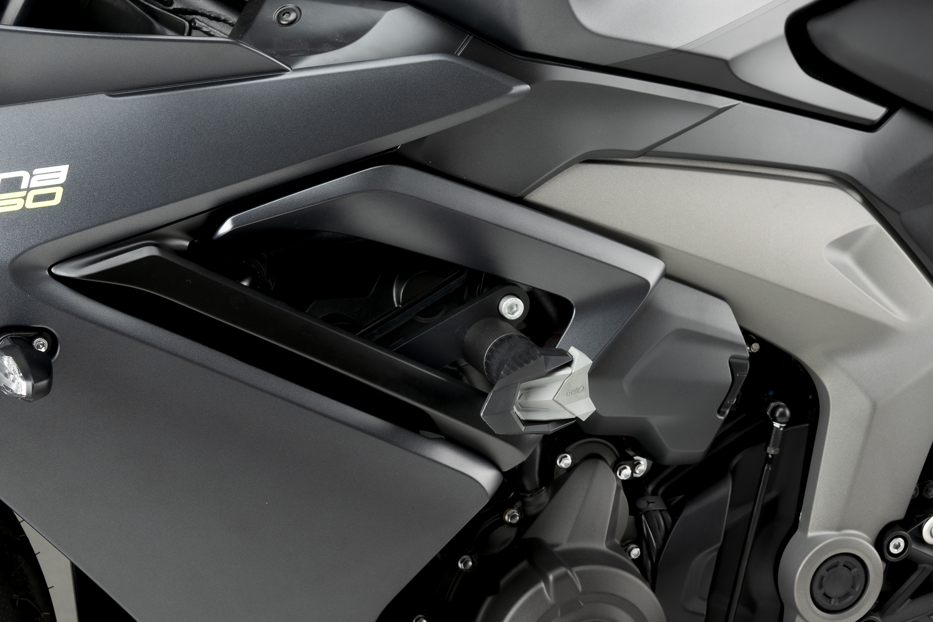 Ce sont des crash pads en nylon soigneusement conçus qui s’intègrent parfaitement à la ligne esthétique de votre moto, dans le respect des mesures, car ils ne dépassent pas du guidon et ne  touchent pas avant les repose-pieds.