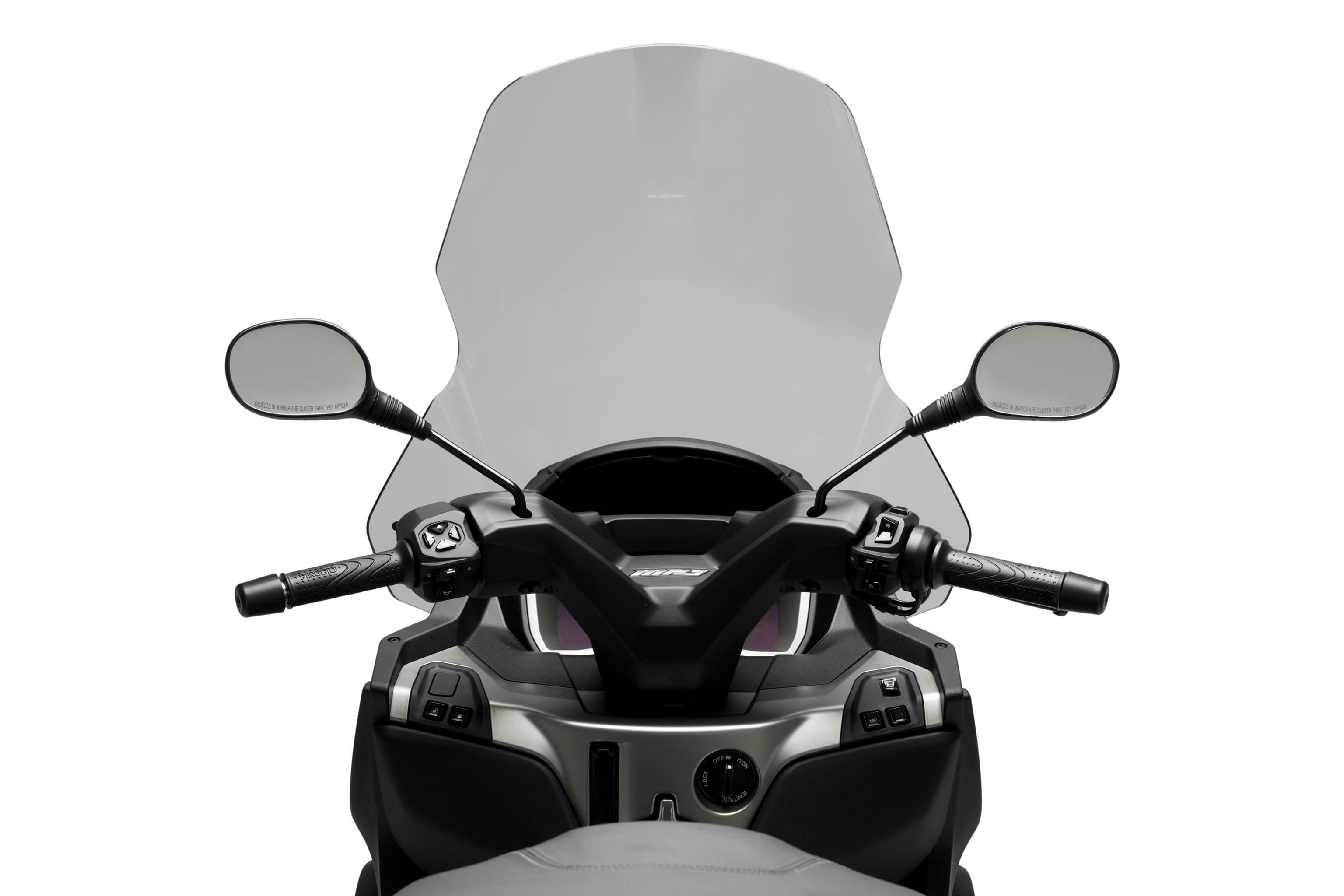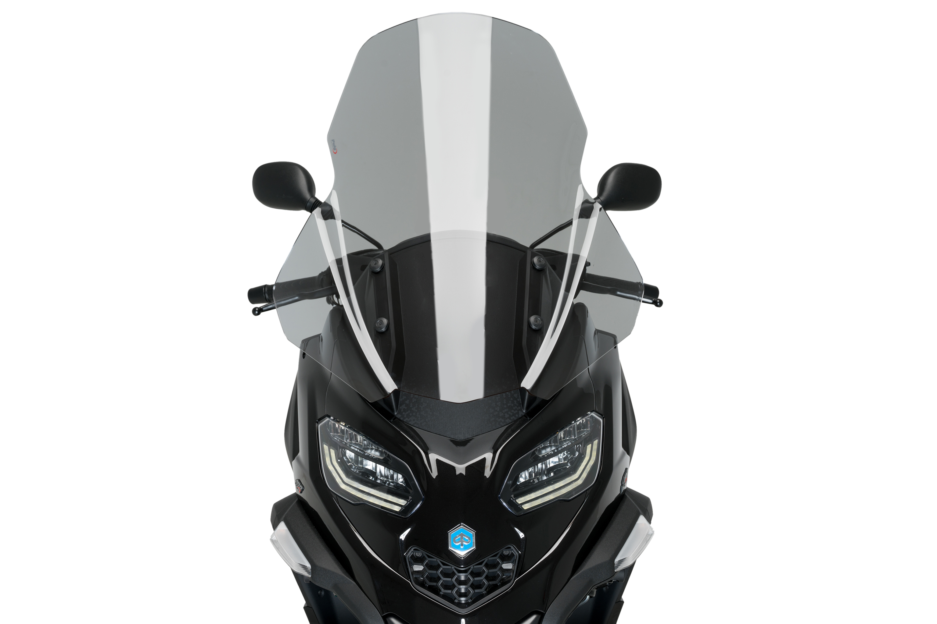 Spécialement conçu pour les scooters innovants Piaggo MP3 400/400 Sport et 530'22. Son design s'intègre parfaitement à l'esthétique sophistiquée et élégante de ces modèles à trois roues.