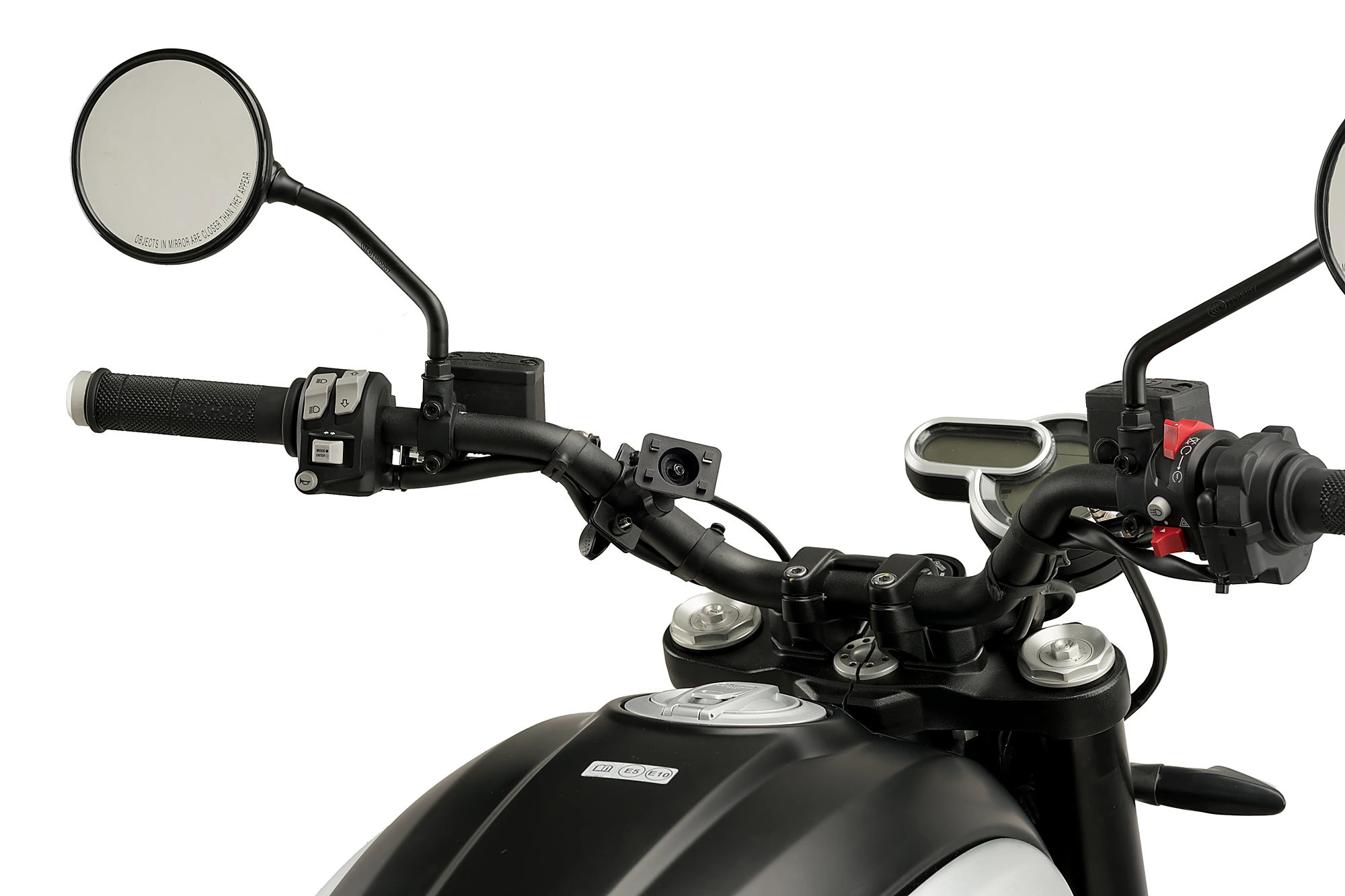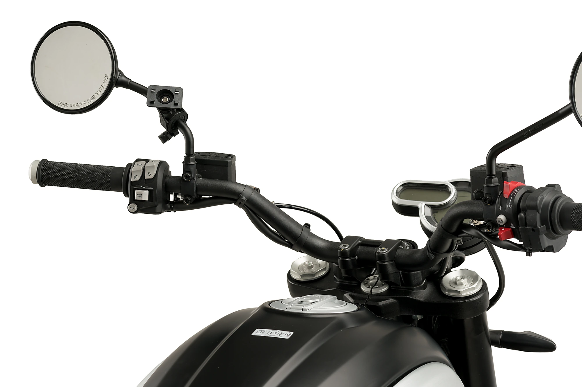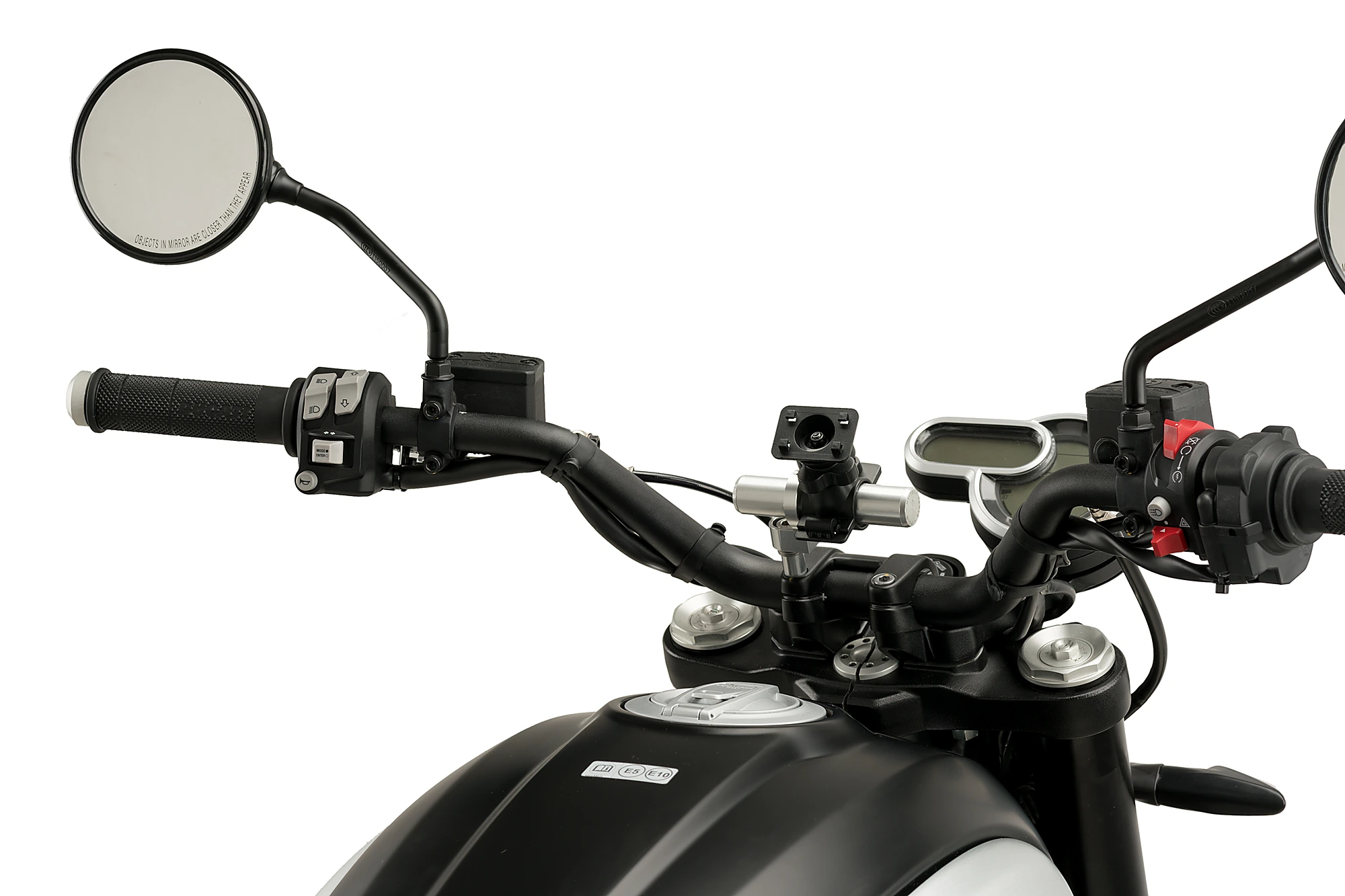 Vous pouvez monter le Support téléphone sur la base du rétroviseur, à la tige du rétroviseur, sur le guidon ou sur le té de fourche de la moto où il será le plus protégé contres les impacts et les trous sur la route.