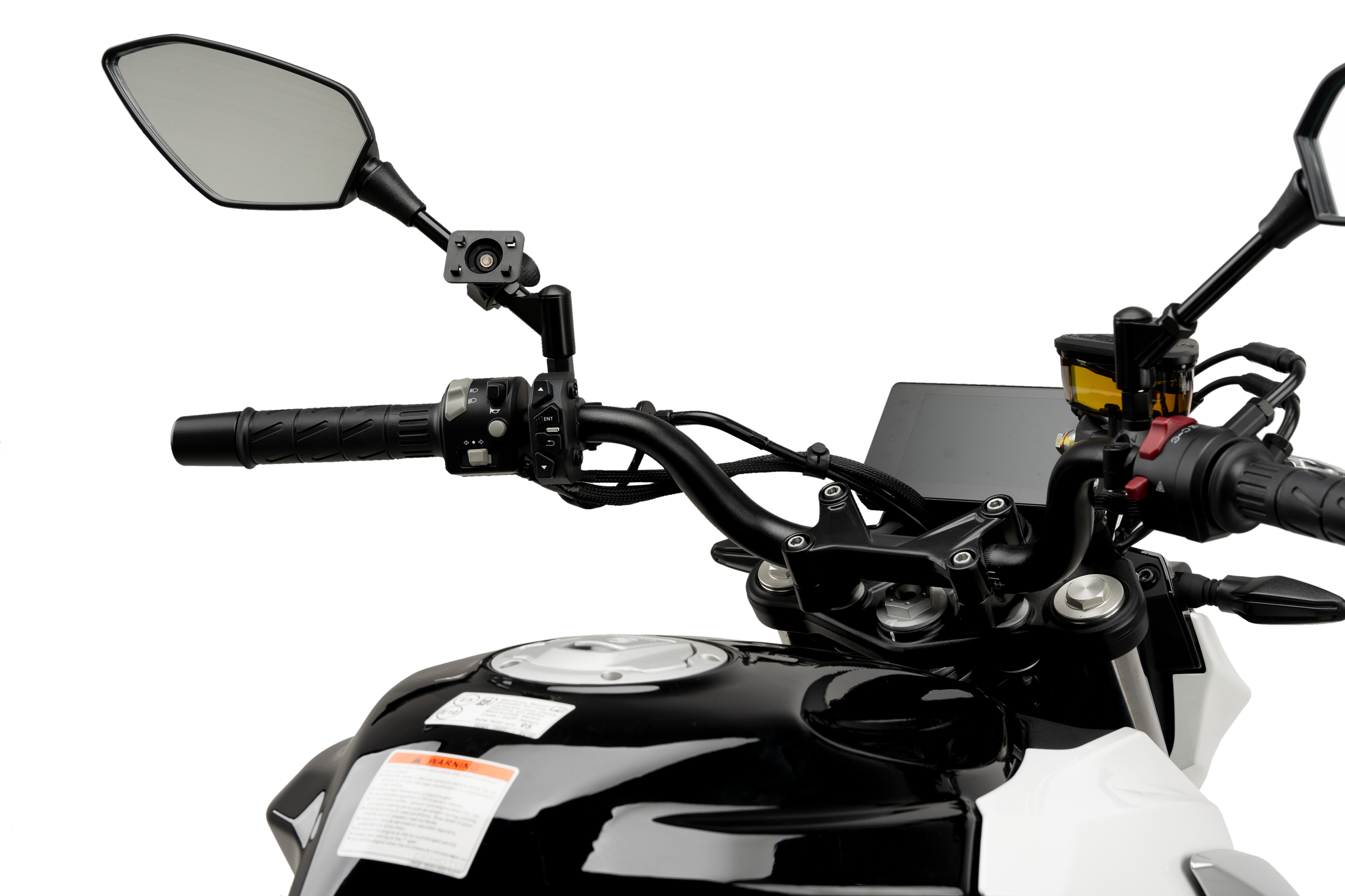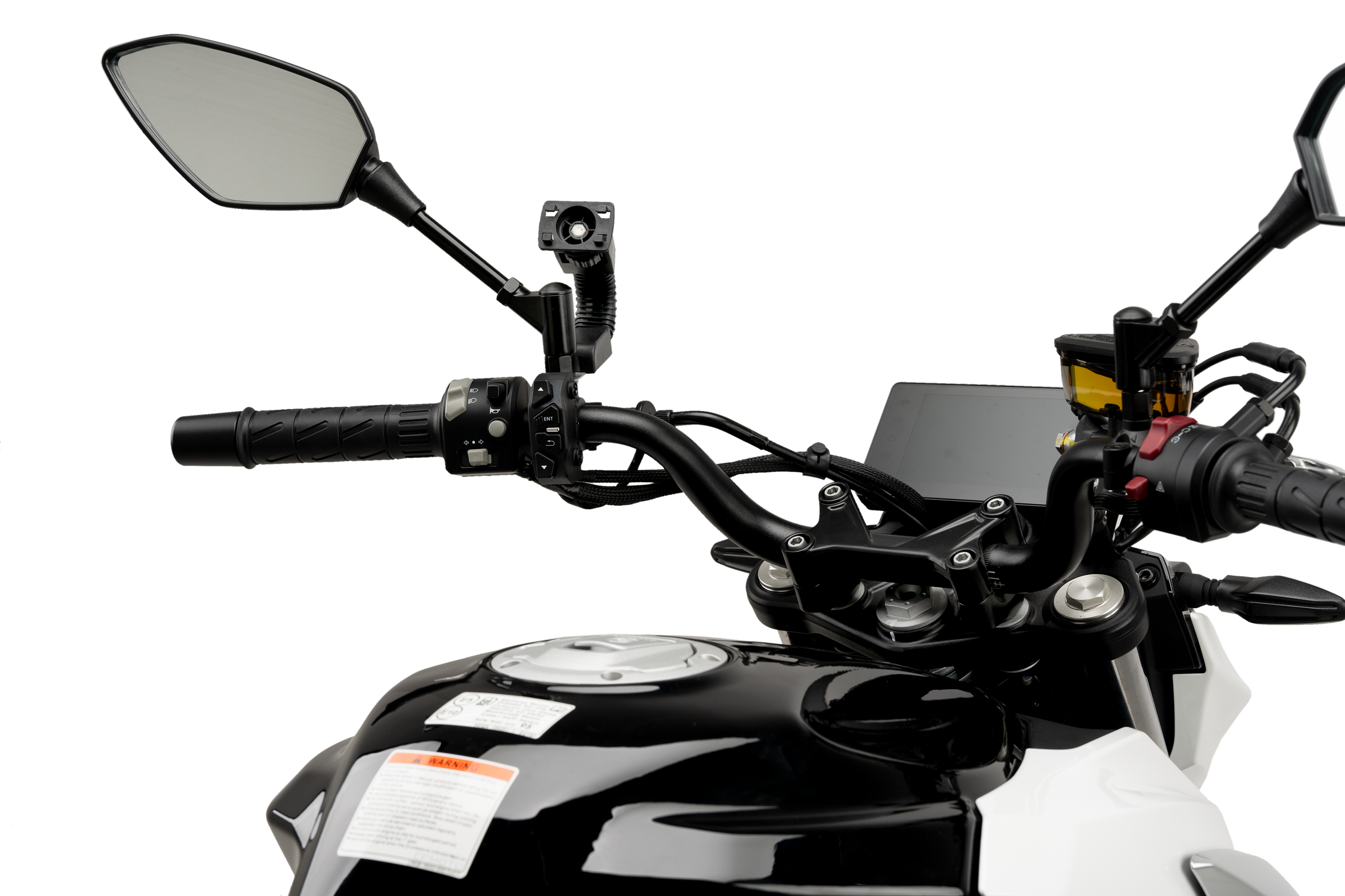 Vous pouvez monter le Support téléphone sur la base du rétroviseur, à la tige du rétroviseur, sur le guidon ou sur le té de fourche de la moto où il será le plus protégé contres les impacts et les trous sur la route.