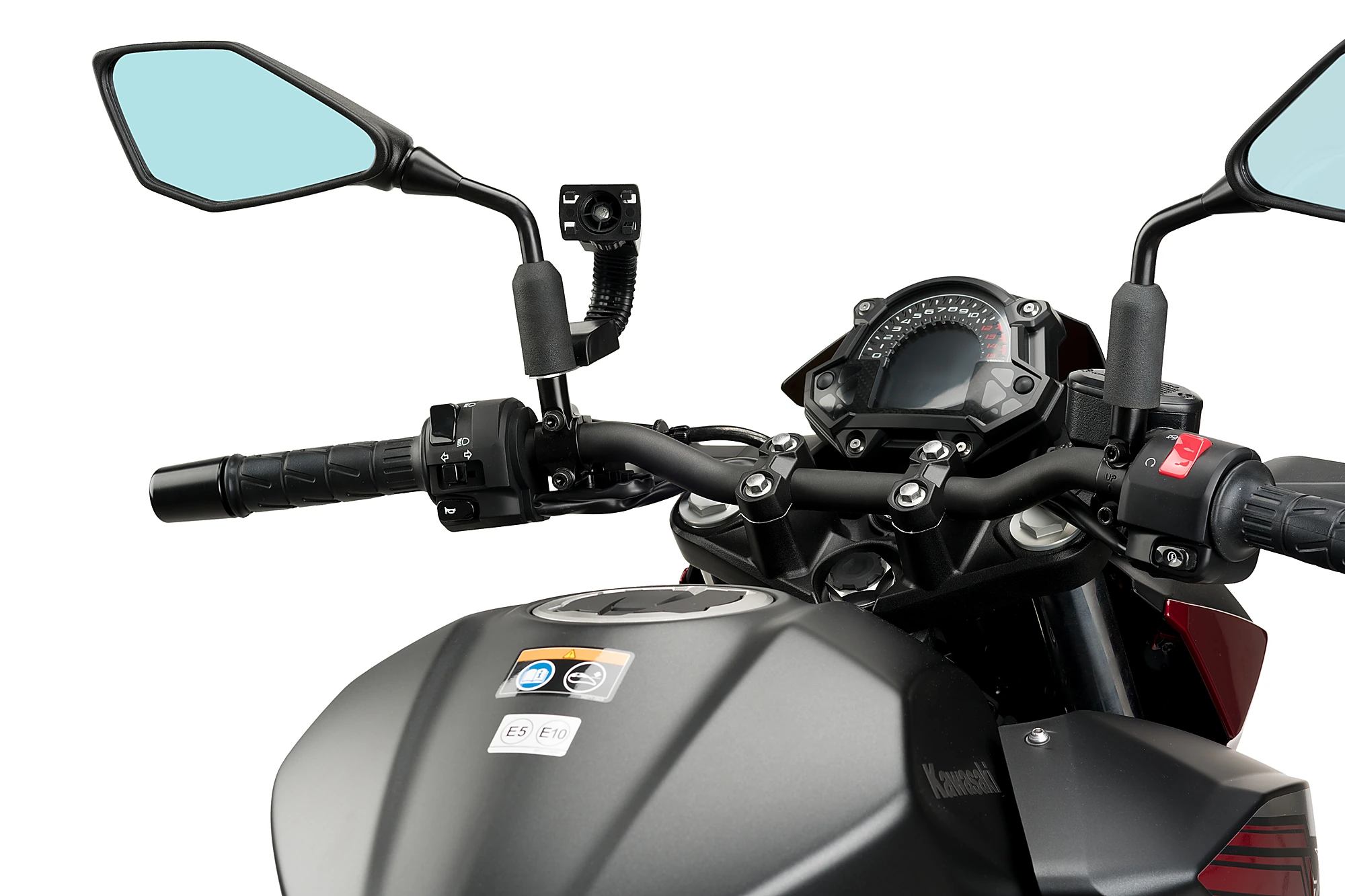 Vous pouvez monter le Support téléphone sur la base du rétroviseur, à la tige du rétroviseur, sur le guidon ou sur le té de fourche de la moto où il será le plus protégé contres les impacts et les trous sur la route.