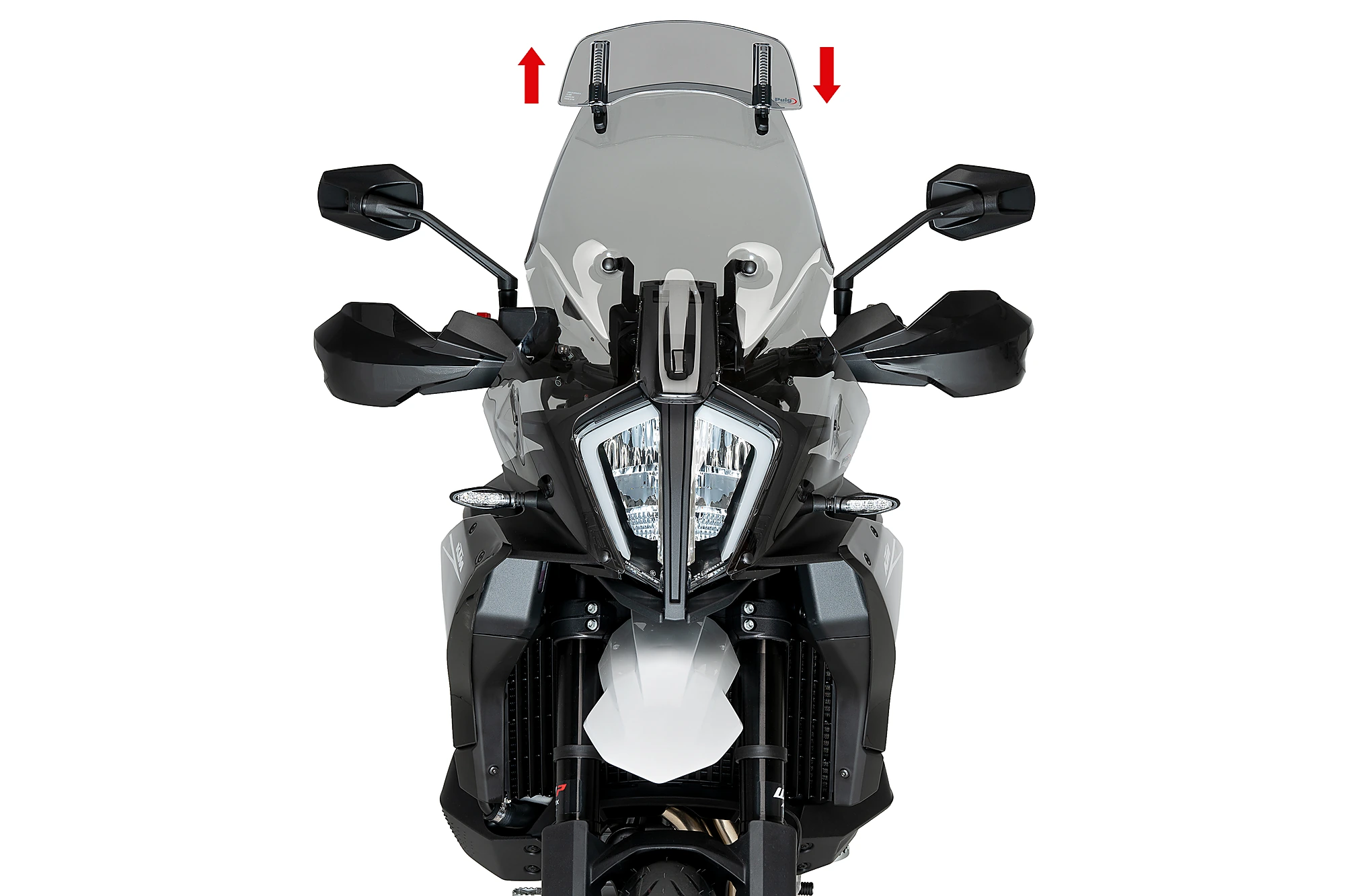 Sa conception et ses dimensions spéciales (300 mm de large et 130 mm de haut) sont optimales pour agir comme un écran contre les rafales de vent, le détournant des zones sensibles telles que le casque et le torse du pilote. De plus, elle évite les éventuelles turbulences et bruits qui peuvent vous déranger ou vous distraire pendant la conduite. L'utilisateur pourra adapter la visière jusqu'à 4 positions de rotation, qui, avec les guides qui permettent de régler sa hauteur de 100, deviennent des positions infinies qui permettent de l'ajuster à votre taille ou à vos préférences.