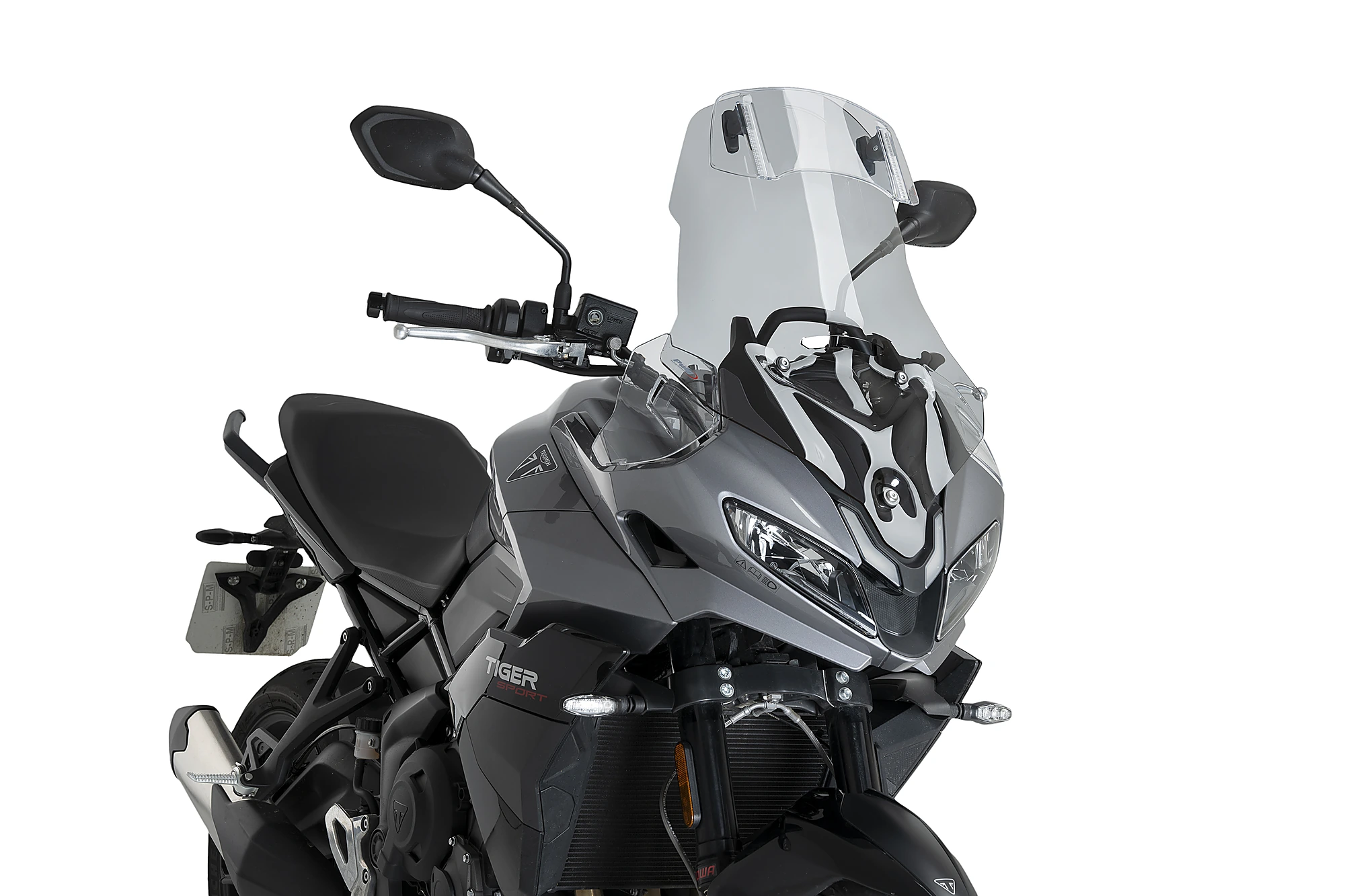 Sa conception et ses dimensions spéciales (300 mm de large et 130 mm de haut) sont optimales pour agir comme un écran contre les rafales de vent, le détournant des zones sensibles telles que le casque et le torse du pilote. De plus, elle évite les éventuelles turbulences et bruits qui peuvent vous déranger ou vous distraire pendant la conduite. L'utilisateur pourra adapter la visière jusqu'à 4 positions de rotation, qui, avec les guides qui permettent de régler sa hauteur de 100, deviennent des positions infinies qui permettent de l'ajuster à votre taille ou à vos préférences.