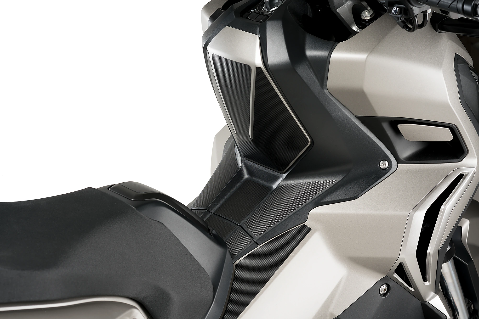 Proteggi e cambia il look della parte bassa del tuo maxiscooter con la nuova linea di adesivi protezione serbatoio "salva graffi" di Puig. Questi adesivi si adattano a diversi tipi di scooter grazie ai kit dedicati per ogni modello di moto, anche per il crossover X-ADV.