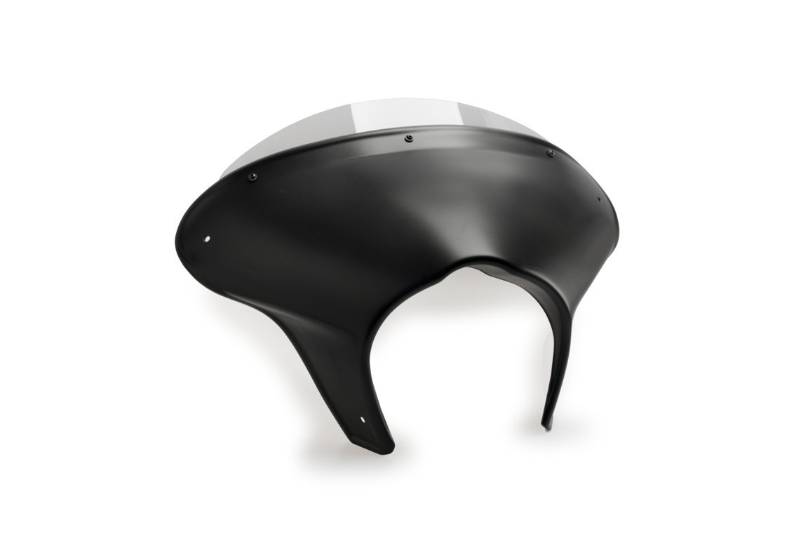 Il cupolino Batwing SML è composto da una base in plastica nera di diverse dimensioni, studiata per esaltare il design Custom della tua moto. Lo schermo trasparente in materiale metacrilato può essere posizionato in due diverse altezze e deve essere installato dall'acquirente con il kit di montaggio incluso.