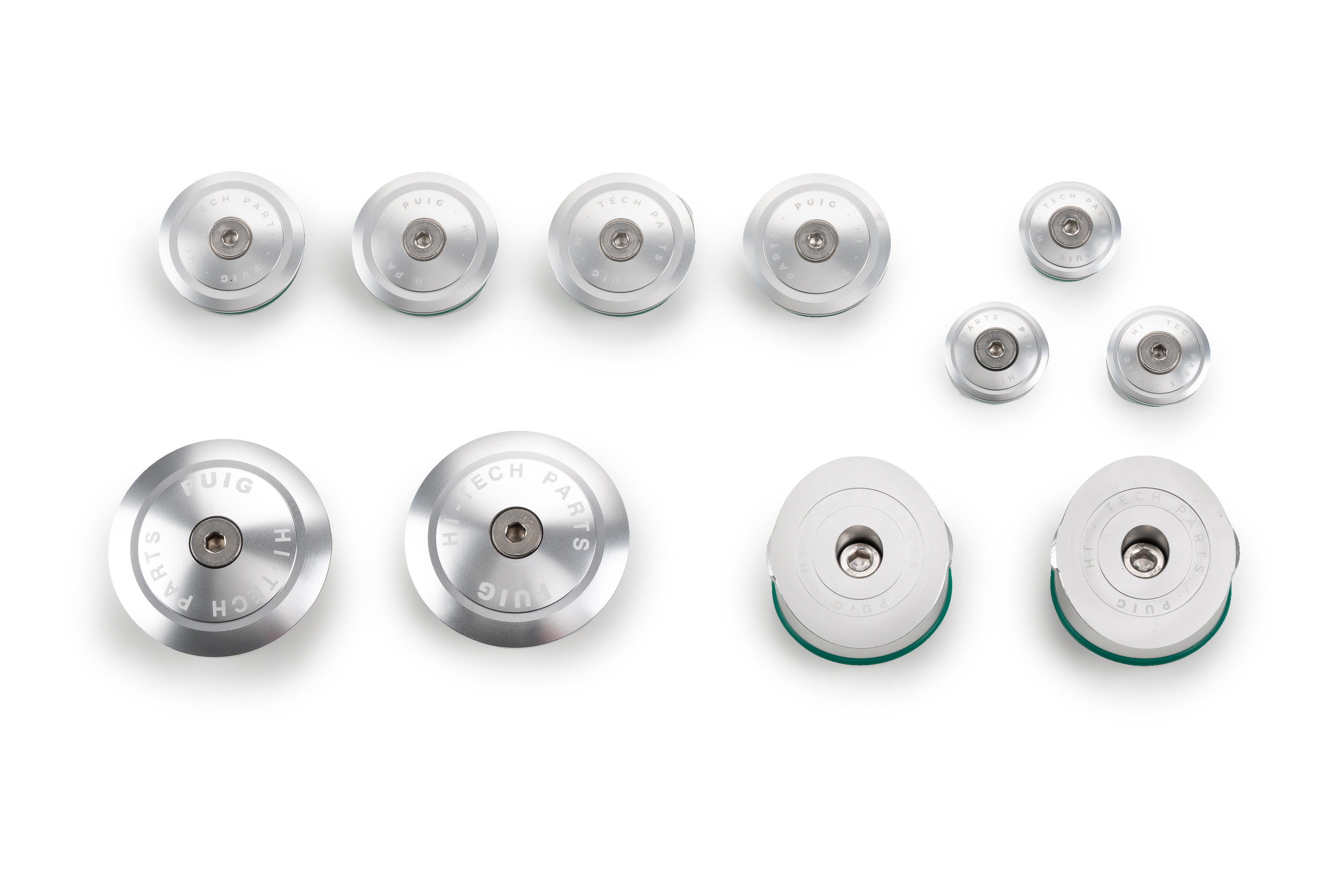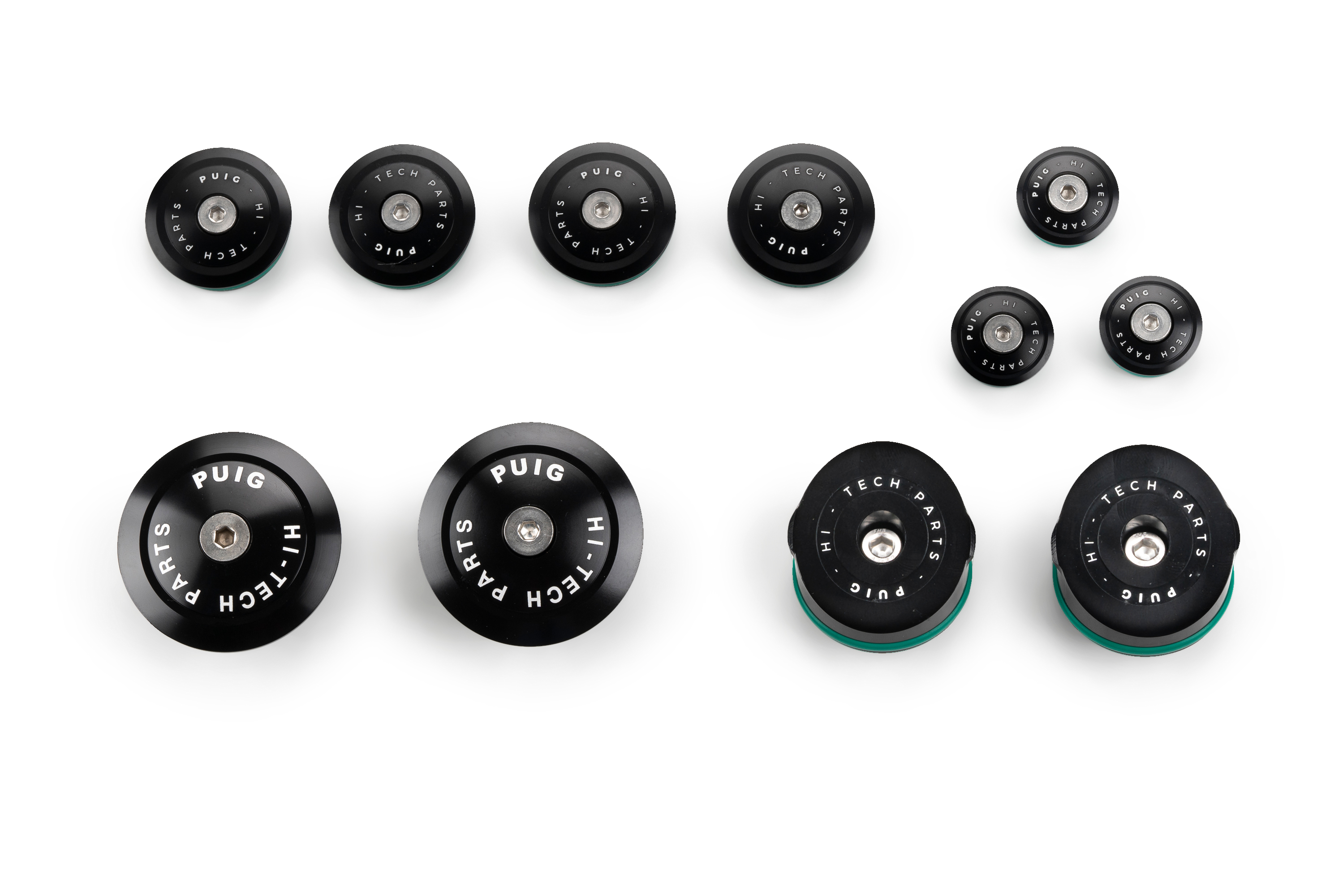 Progettati e sviluppati da Puig, sono ricavati da un unico blocco di alluminio con finitura anodizzata nera e hanno loghi incisi al laser per creare una finitura perfetta.
