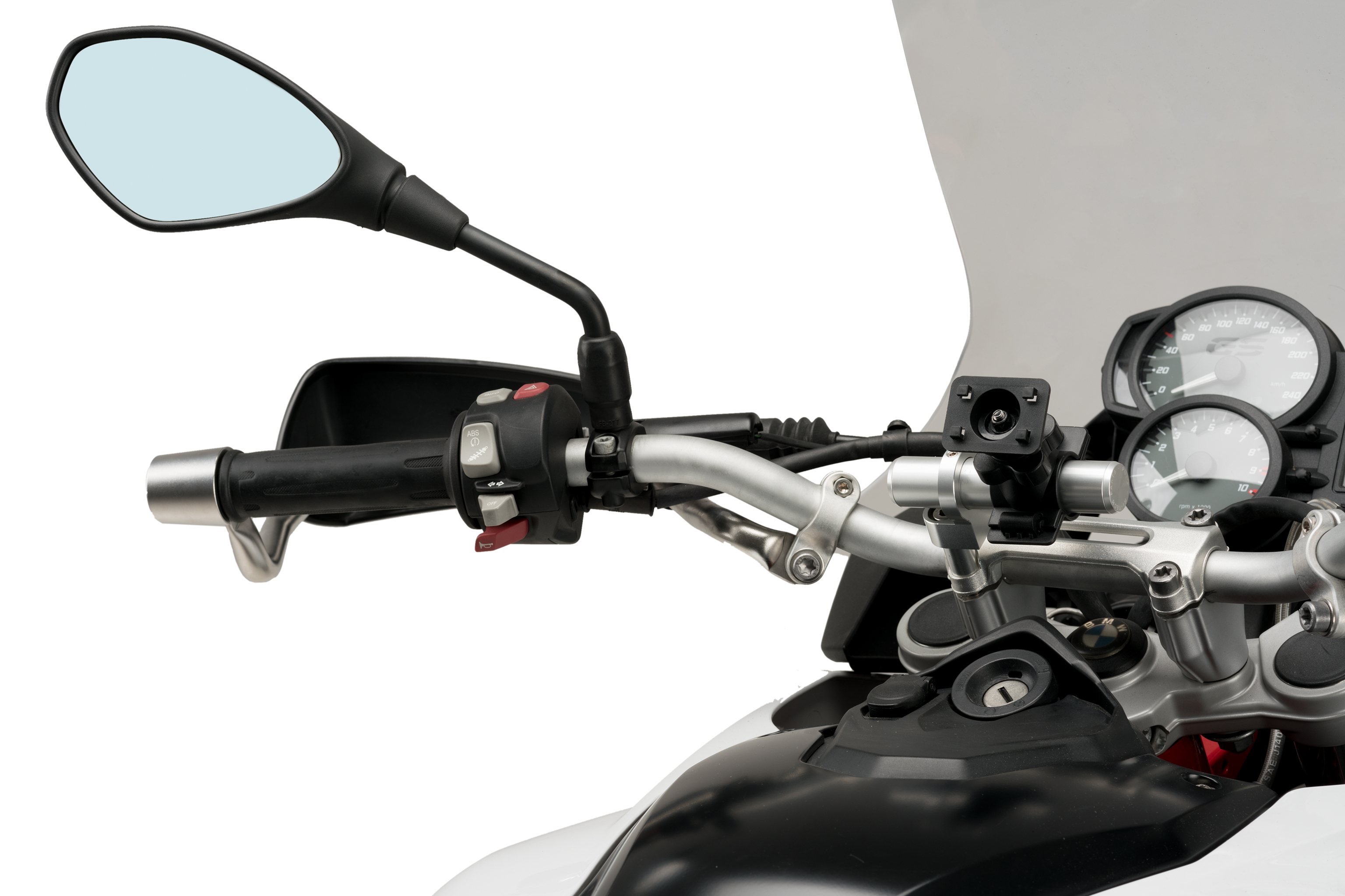 Una volta che il supporto è installato, è necessario acquisire un supporto manubrio per essere in grado di montare il telefono cellulare. È possibile ottenere il supporto Puig per manubrio rif. 3534N.