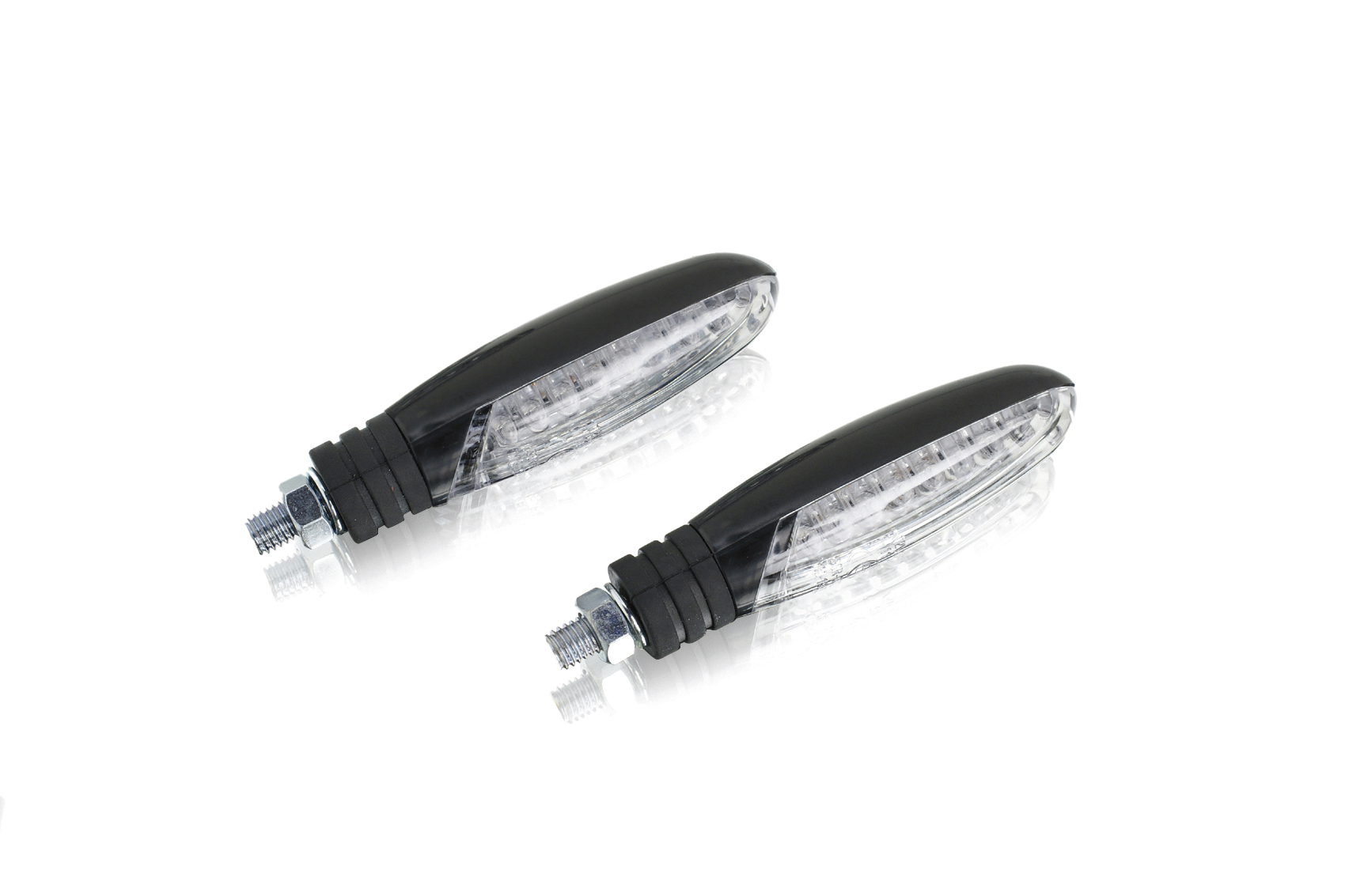 Rinnova gli indicatori della tua moto con gli indicatori universali CIGAR della Puig. Lampeggiante nero con vetro trasparente e luci a LED (90x25mm).