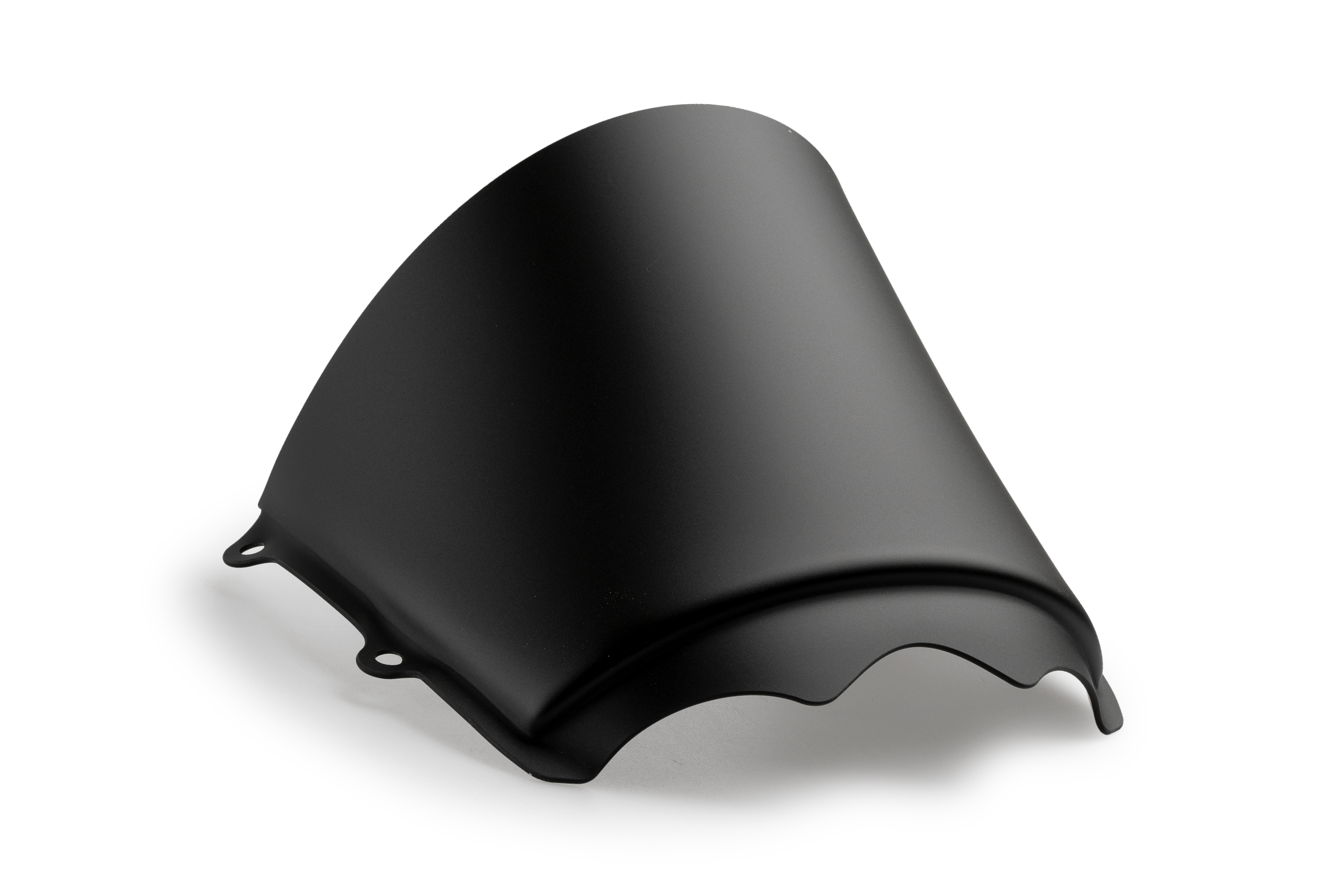 Realizzato in materiale acrilico ad alta resistenza spesso 3 mm, garantisce un pezzo leggero e altamente resistente a possibili impatti e graffi, offrendo allo stesso tempo una trasparenza perfetta quando si guarda attraverso. Il bordo da 2 mm del parabrezza è arrotondato con un raggio di 2 mm per aumentare la sicurezza del pilota e rispettare le rigorose normative di omologazione europee.