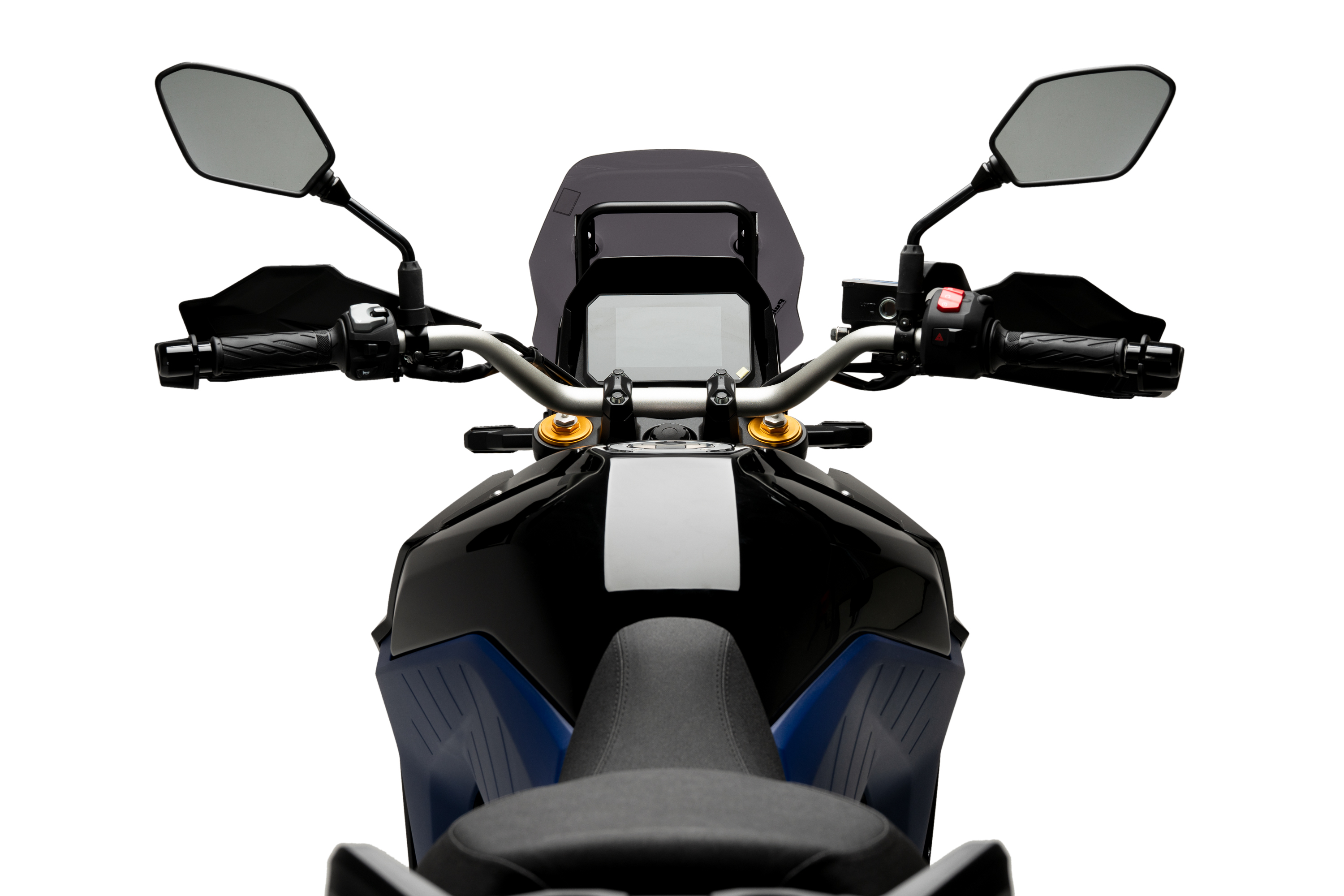 Con misure totali di 290 mm di larghezza per 290 mm di altezza, il cupolino Puig Sport è 35 mm più alto rispetto al cupolino di serie della Suzuki V-Strom 800 '23.