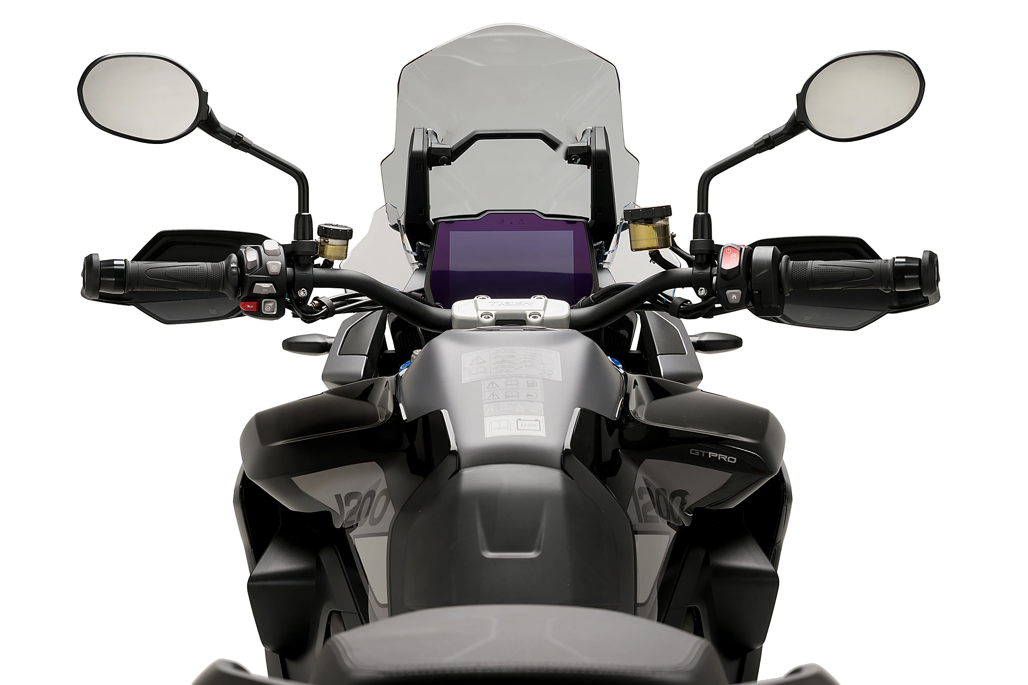 Dalle dimensioni più compatte rispetto al cupolino originale, le sue linee spigolose e aggressive si sposano perfettamente con l'estetica del maxi trail inglese. Offrendo un campo visivo chiaro e pulito, ideale sia per la guida fuoristrada che per i tour urbani o le uscite sportive.