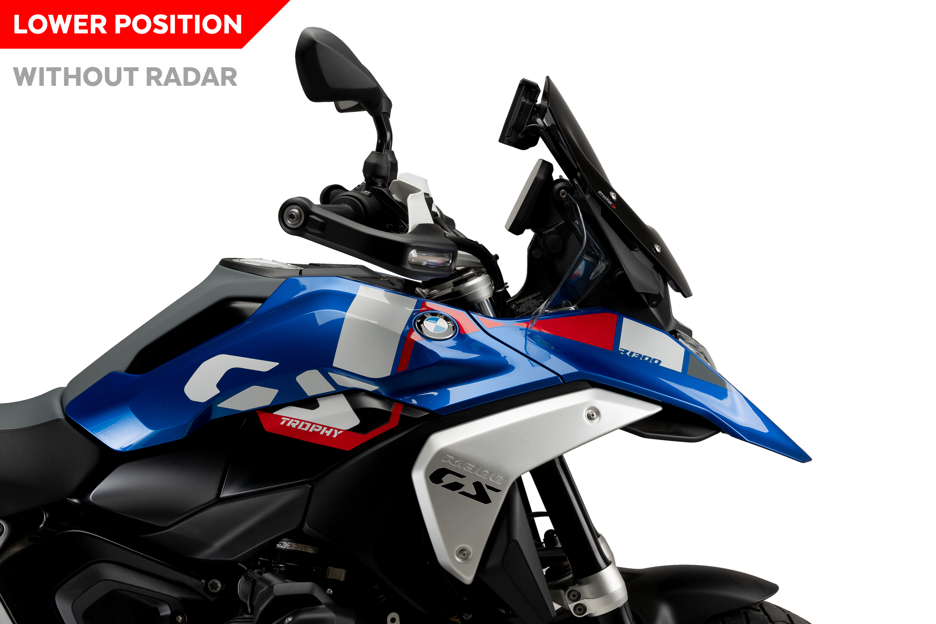 La fessura frontale del parabrezza Sport è progettata in modo coerente al meccanismo di sollevamento della moto, che oltre a conferire rigidità al parabrezza, gli dona un look sportivo perfettamente integrato nella parte anteriore della GS 1300. Nel parabrezza con il riferimento 21794, la parte inferiore si adatta perfettamente al contorno del radar ACC, il nuovo sistema di assistenza al conducente Controllo automatico della velocità che può essere incorporato nella GS21300, per non interferire nelle sue funzioni.