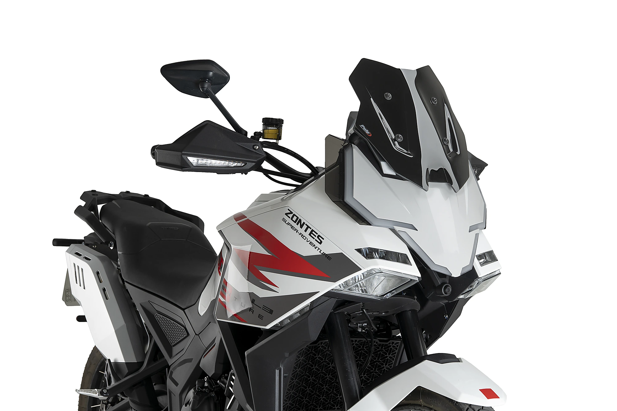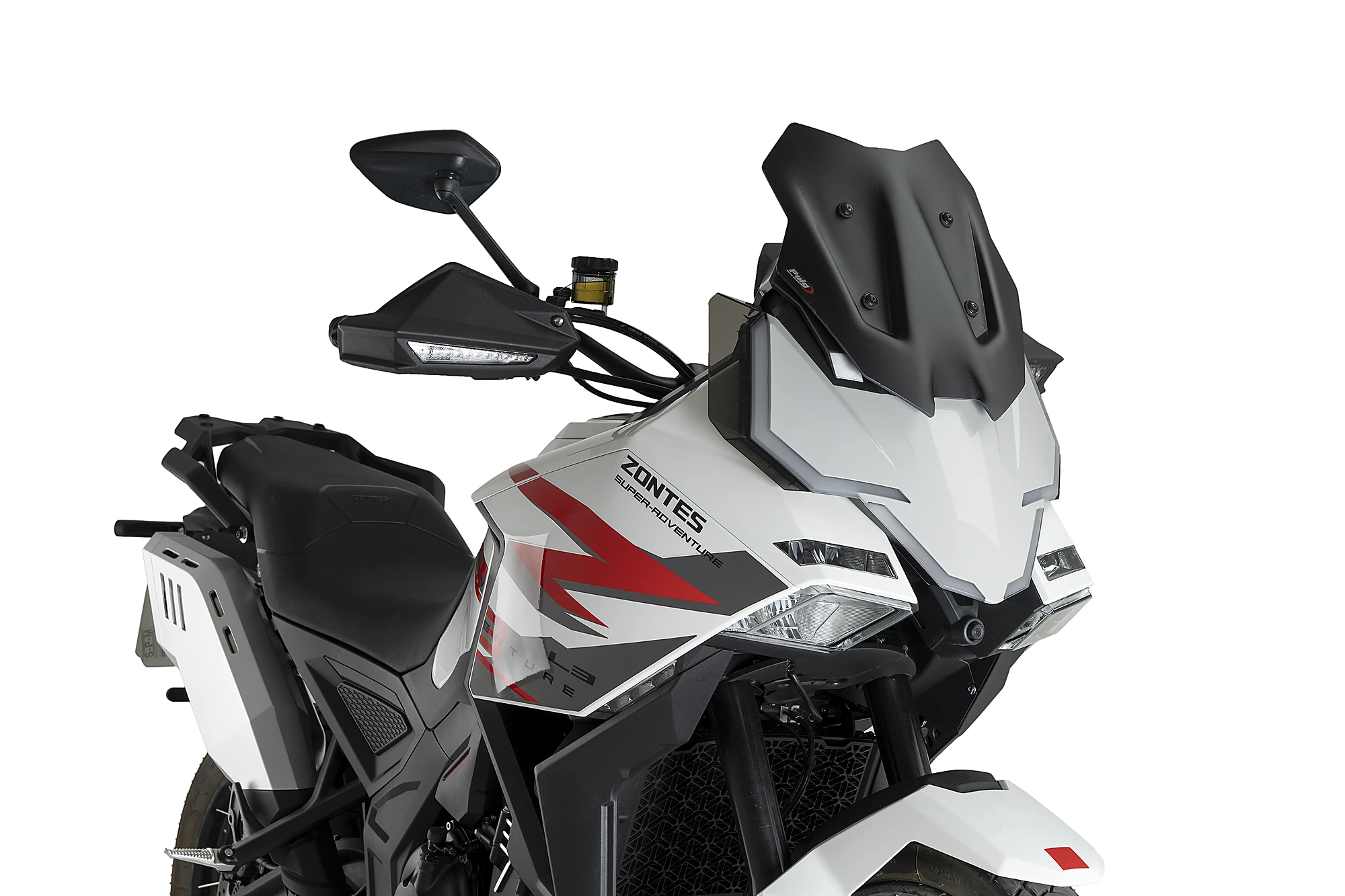 Le dimensioni complessive sono 325 mm di larghezza e 365 mm di altezza. Una volta installato, il cupolino Puig Sport risulta 120 mm più basso rispetto allo schermo originale standard della Zontes 703F 2024, rafforzandone l’impostazione Sport e la leggerezza visiva.