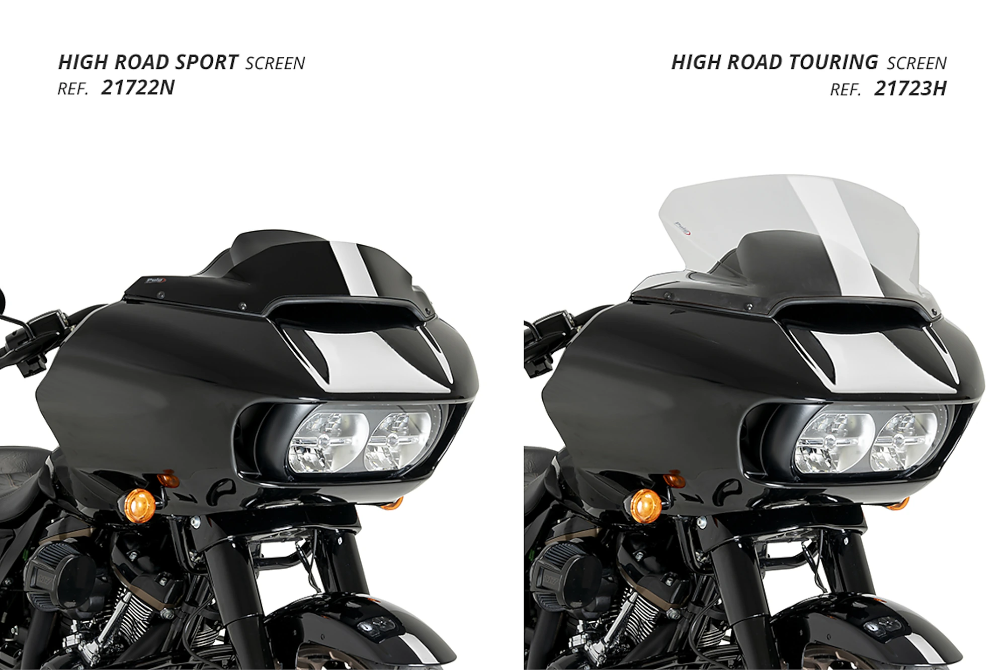 Le due versioni del parabrezza High-Road di Puig sostituiscono gli originali di Harley Davidson, quindi si fissano con la stessa viteria, pur offrendo particolarità a seconda del modello. Il parabrezza touring ha delle forme laterali progettate per deviare meglio l'aria che arriverebbe alla zona delle spalle per evitare un flusso d'aria fastidioso per il pilota.