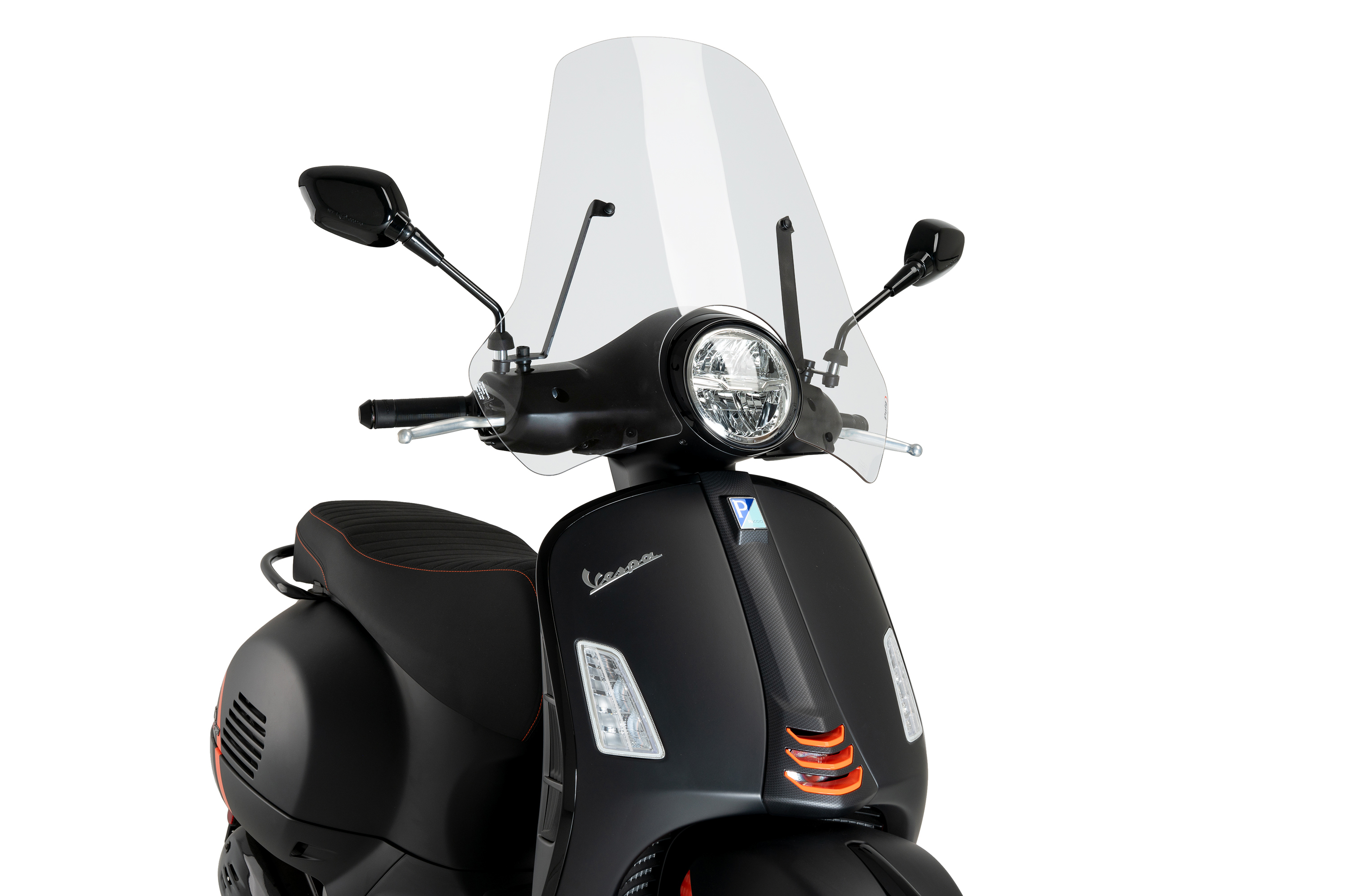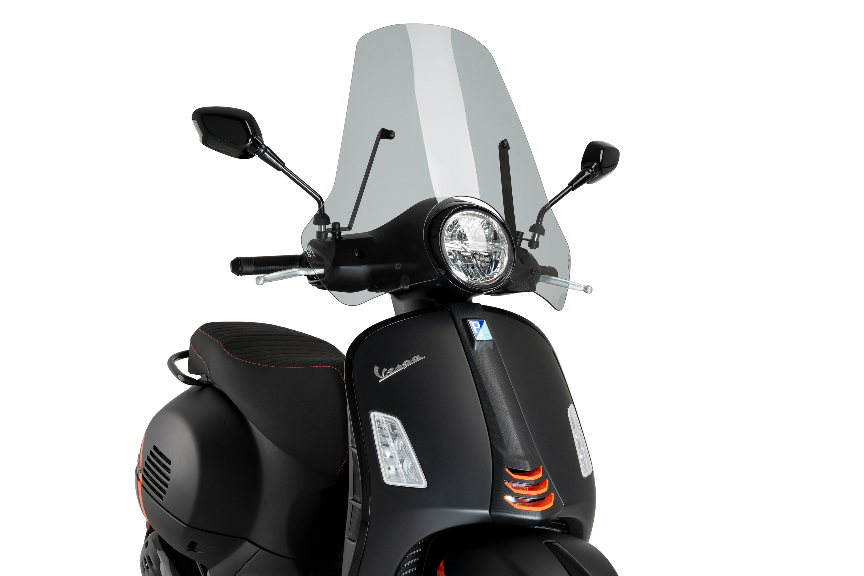 Rafforza la sicurezza della tua Piaggio Vespa GTS e migliora la sua capacità aerodinamica con il nuovo cupolino Touring GTS di Puig.