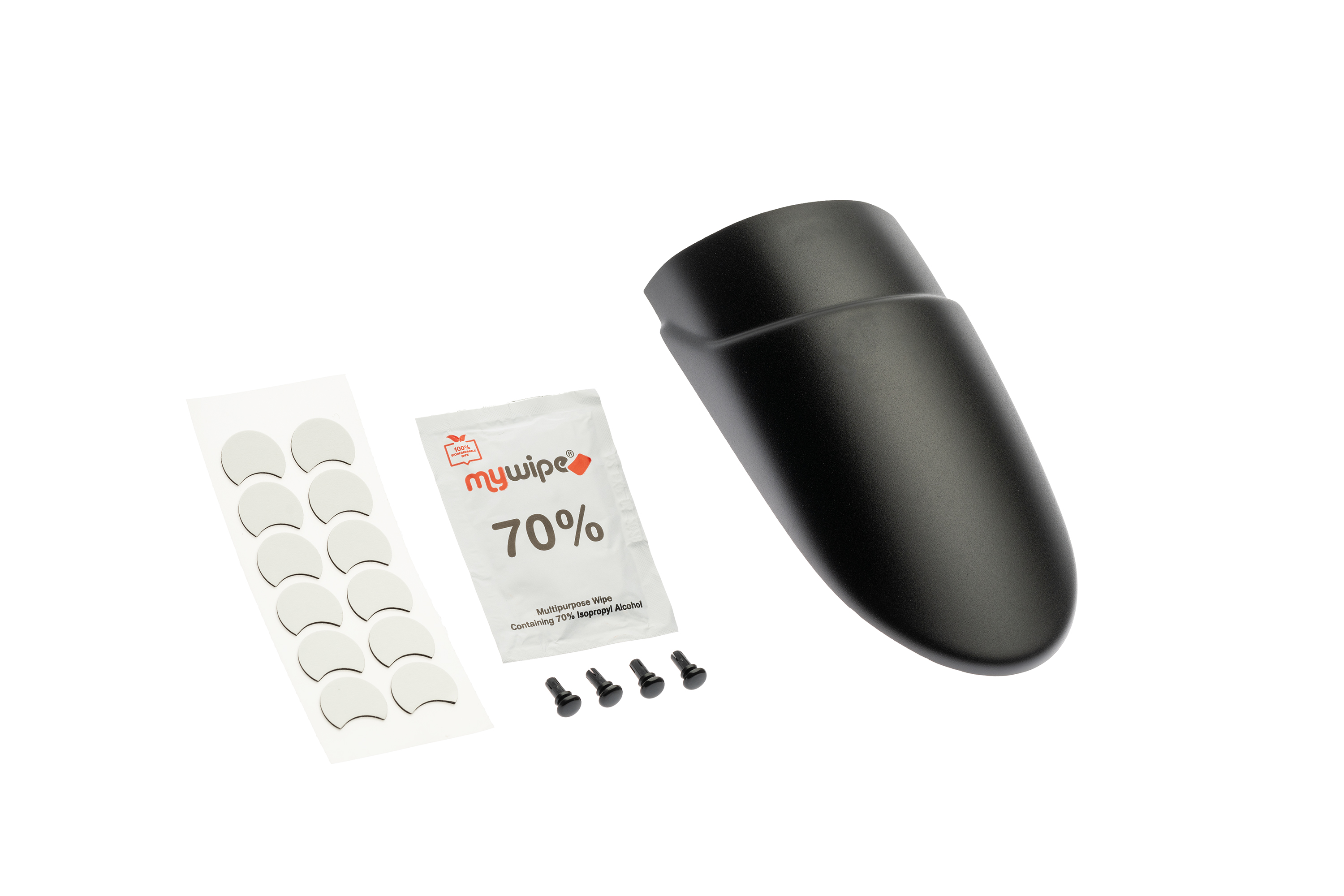 Da montare con i cuscinetti adesivi inclusi. Inoltre, i rivetti sono inclusi come opzione per una maggiore sicurezza.