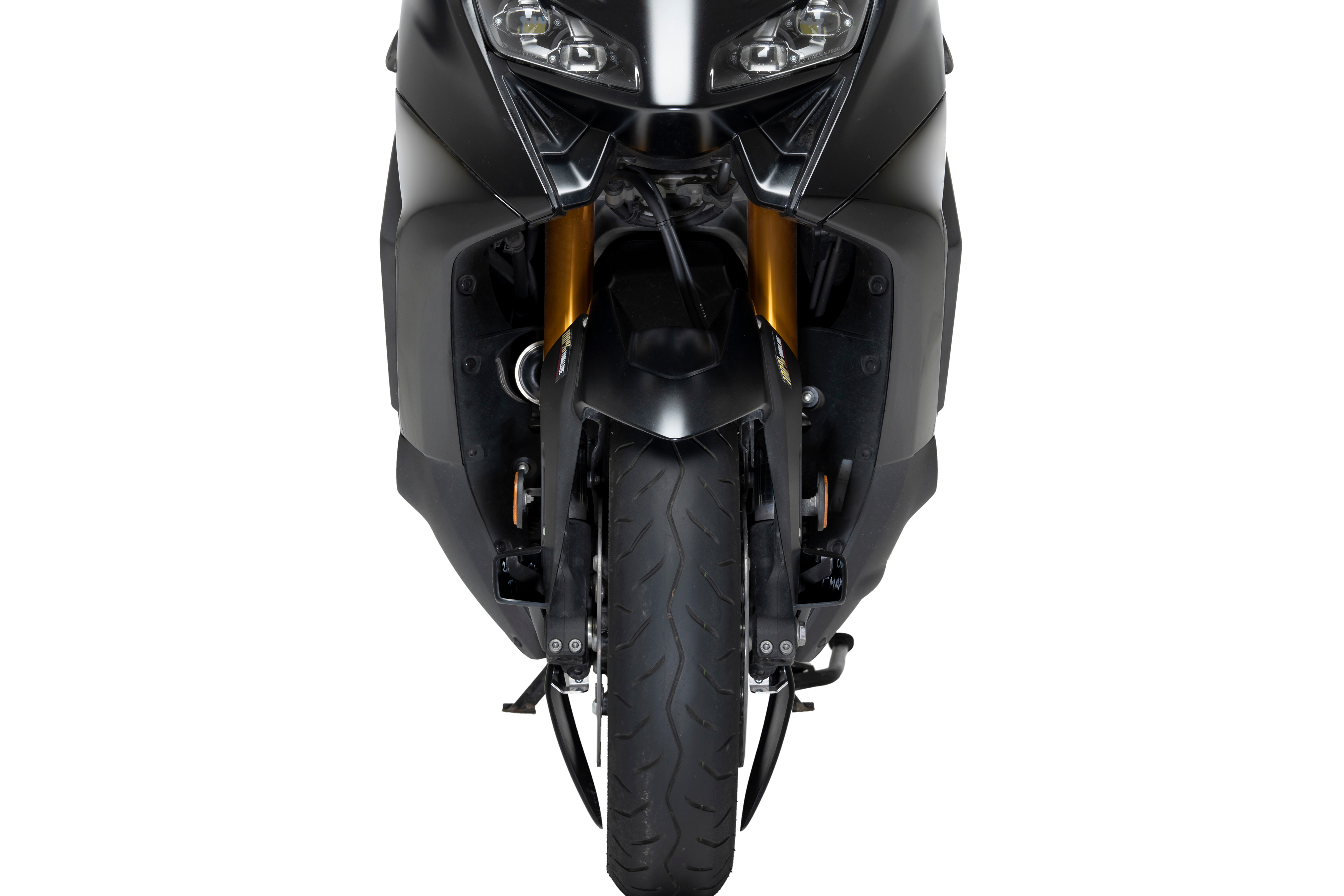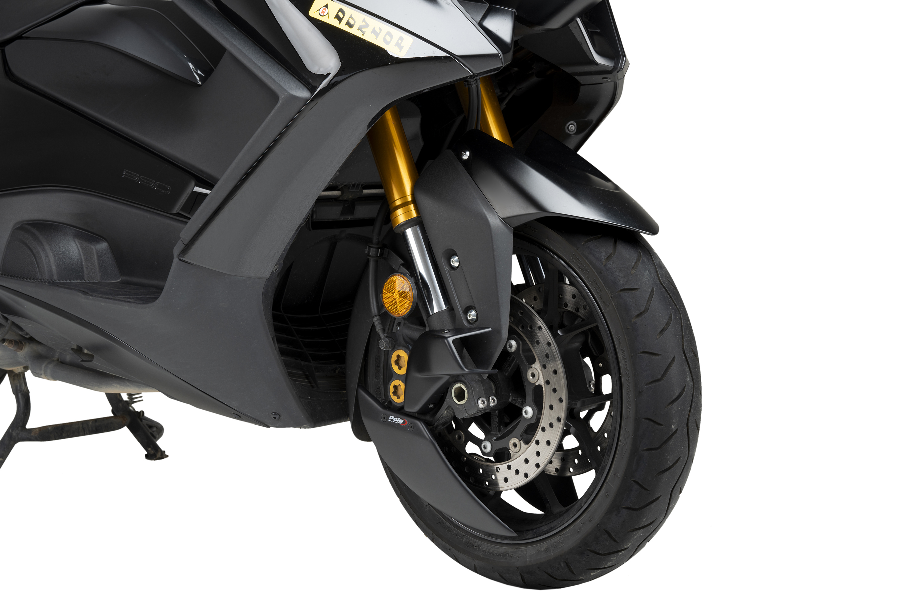 Il suo design studiato, oltre a fornire un'estetica più sportiva e personalizzata, elimina le turbolenze alla ruota anteriore creando una parziale copertura lenticolare che favorisce l'aerodinamica della moto, soprattutto alle alte velocità. Include staffe in alluminio robuste e leggere rifinite in nero testurizzato discreto.