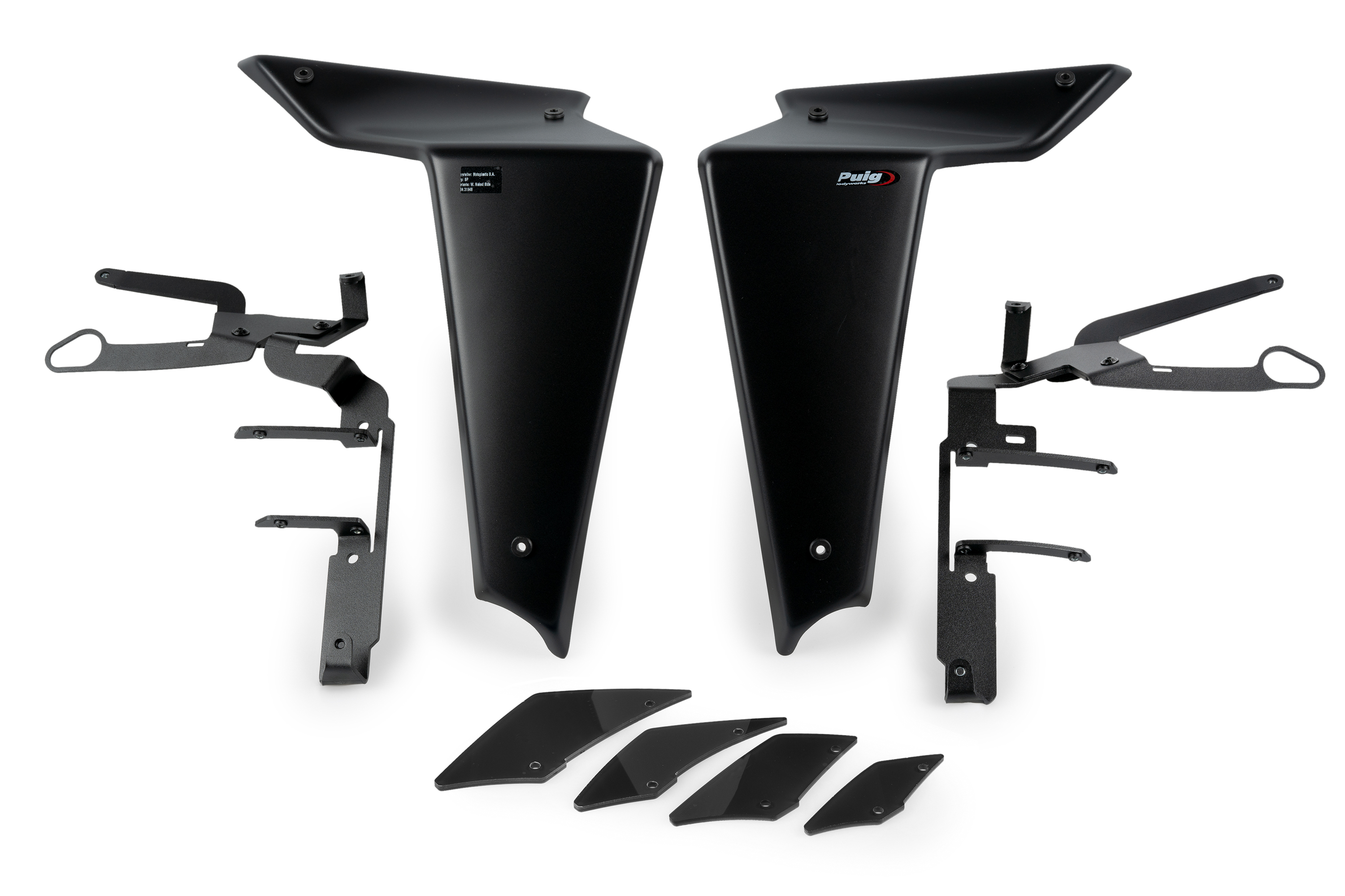 Dai alla tua motocicletta le ultime innovazioni dalle corsie dei box del campionato WorldSBK e MotoGP con gli spoiler Downforce Naked di Puig. L'esperienza acquisita insieme al Kawasaki Racing Team ci ha permesso di sviluppare questi spoiler estetici e di effetto downforce per il segmento di maggior successo del nostro mercato.