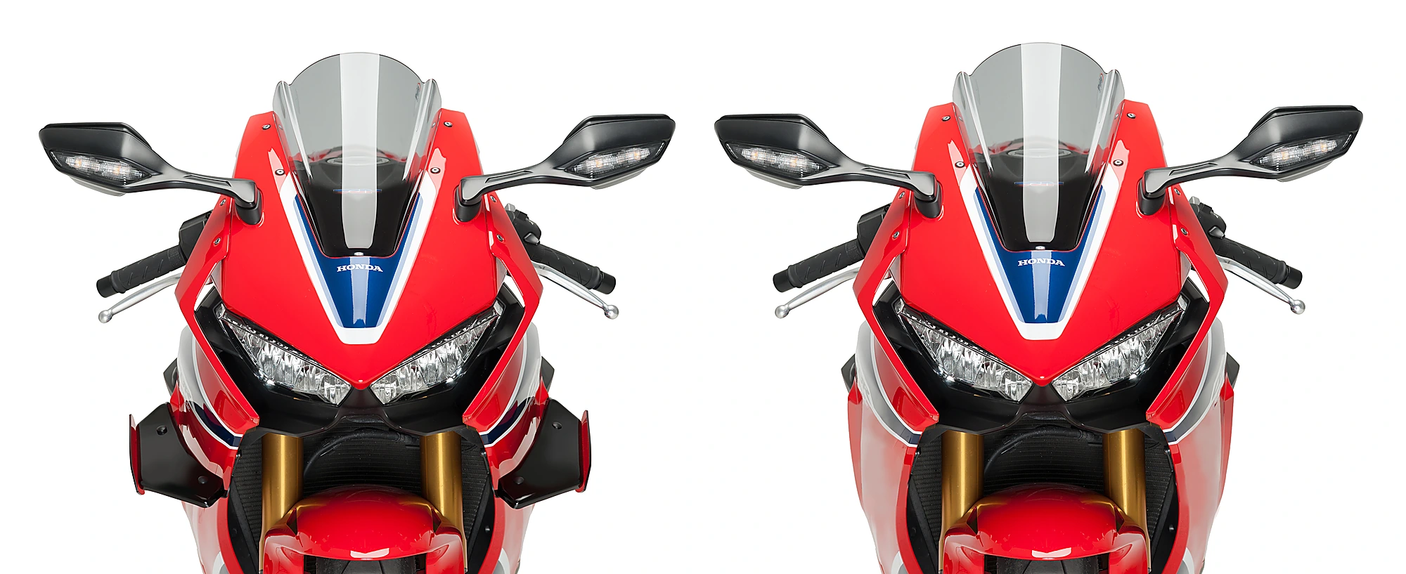 Il montaggio di questi spoiler migliora la stabilità alle alte velocità e riduce il rischio di effetto shimmie, che si verifica quando si perde trazione sulla ruota anteriore e può portare alla completa perdita di controllo. Inoltre, le alette laterali aiutano i cambi di direzione alle alte velocità canalizzando l'aria attraverso il pezzo. Un carico aerodinamico che promette anche l'effetto anti ruota in forti accelerazioni generando un carico aerodinamico verso il basso fino a 6 chilogrammi nell'asse anteriore. I risultati esatti del test della galleria del vento virtuale possono essere consultati per ciascun modello.