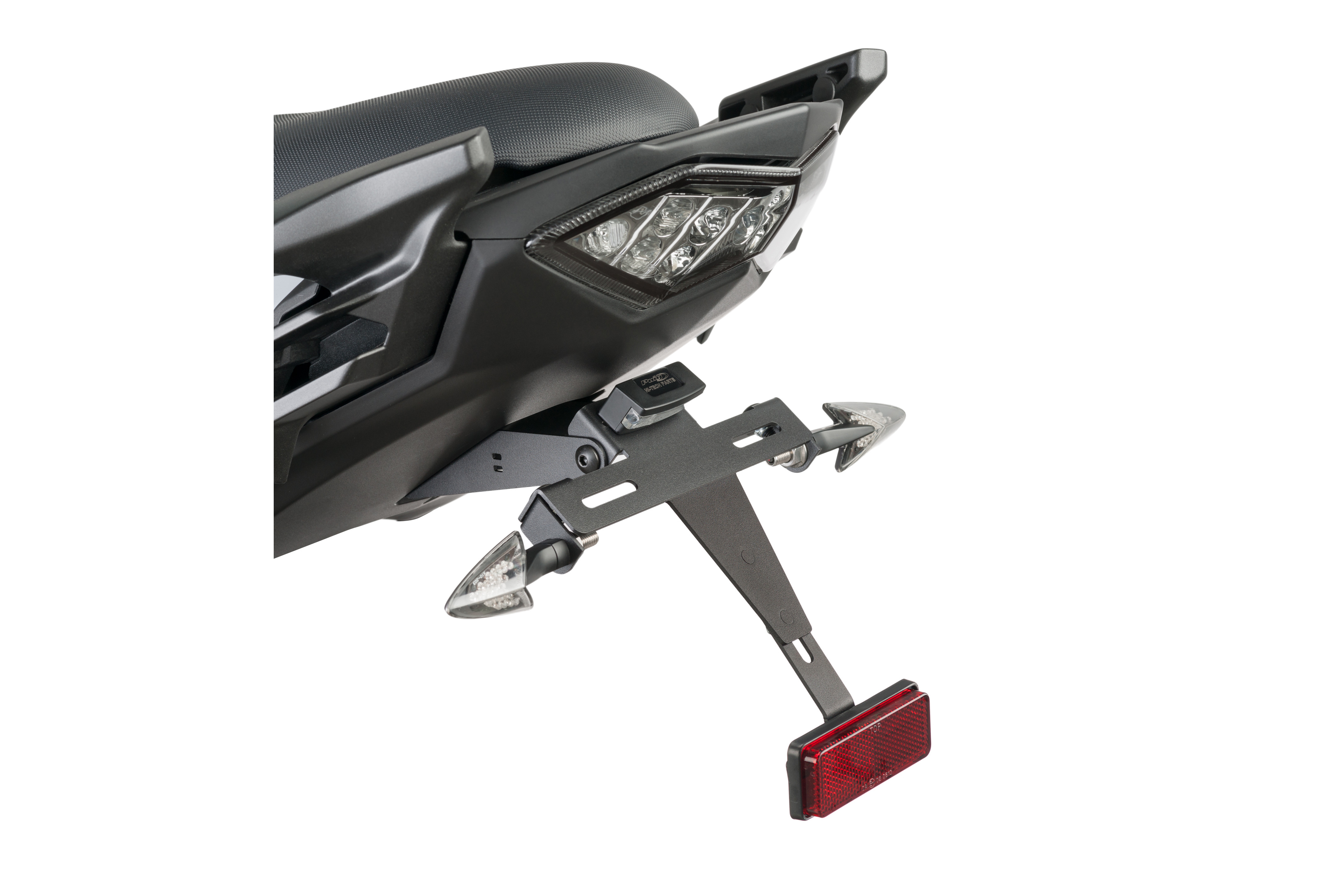 Sostituisci il portatarga originale della tua moto con il supporto portatarga Puig, che, grazie alla sua posizione elevata, dona un aspetto sportivo alla tua motocicletta. Il kit combina parti in acciaio con finitura verniciata in epossidica ed elementi in poliammide, garantendo una significativa riduzione di peso rispetto al supporto originale.
