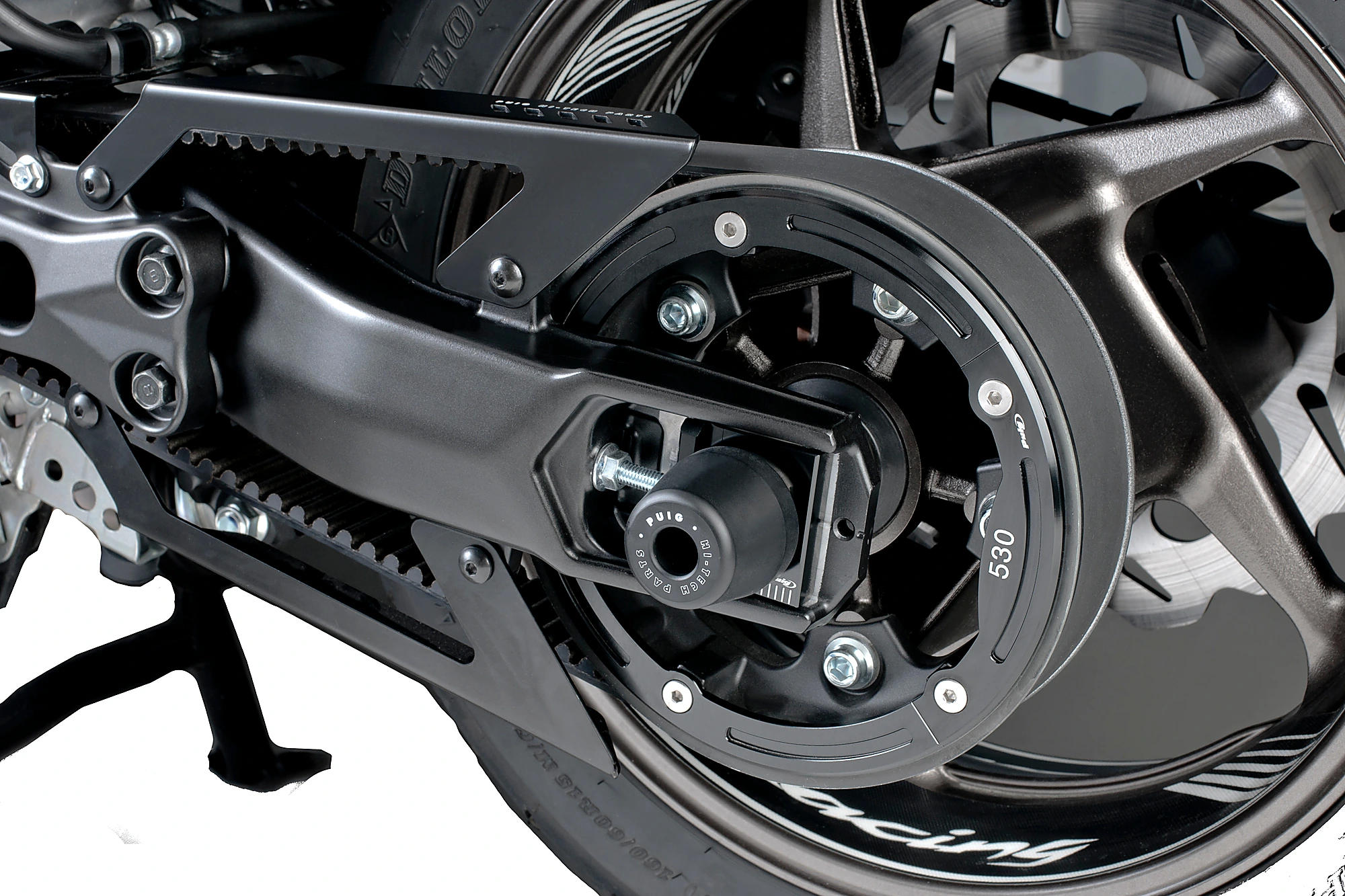 Con la sua installazione si ottiene un'efficace copertura della cinghia di trasmissione, proteggendola nonché le gambe del pilota e del passeggero da fastidiosi schizzi e urti di ghiaia o piccoli oggetti che potremmo trovare sulla strada, allungandone la vita. utile, oltre a proteggere le parti esposte della trasmissione in caso di caduta.