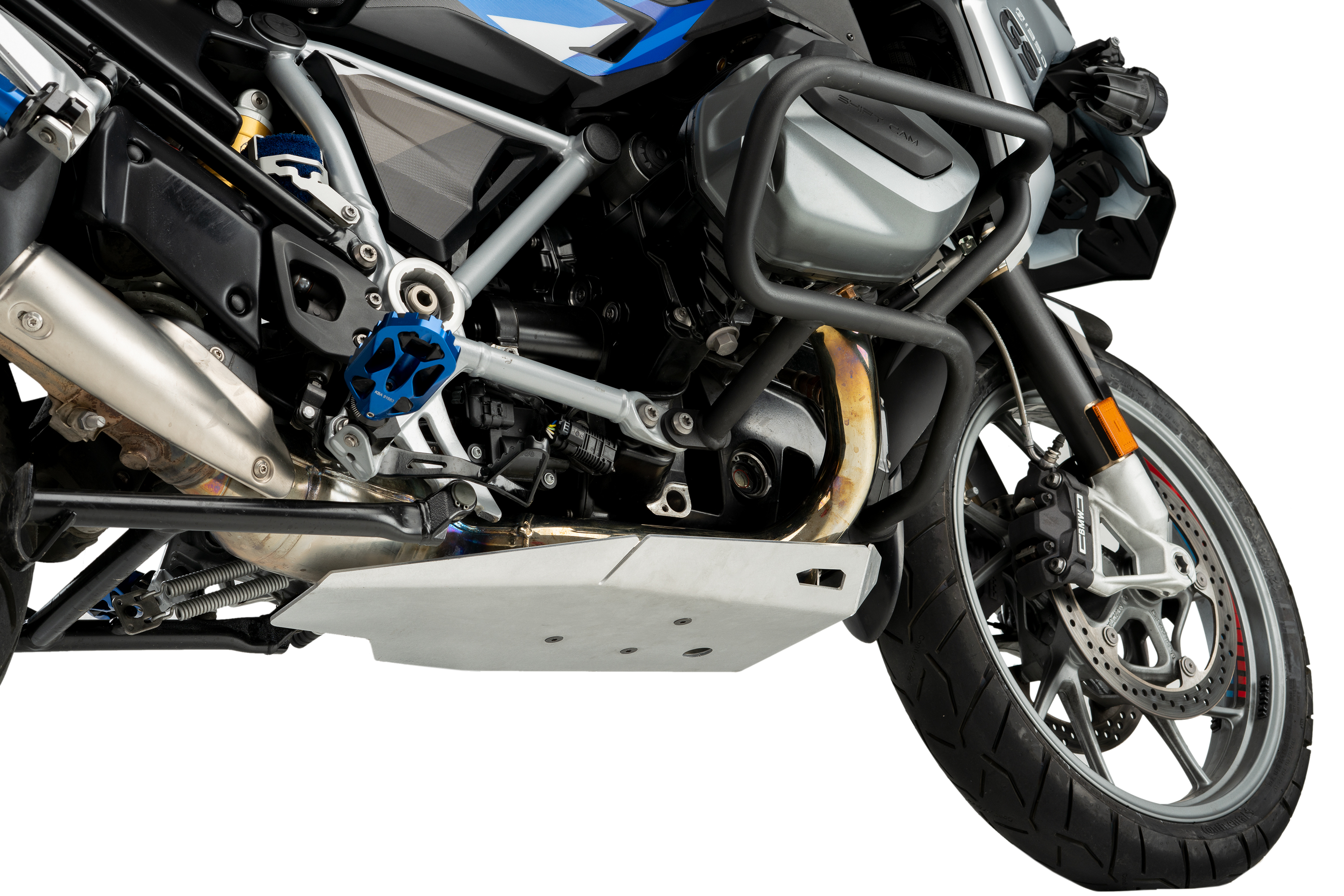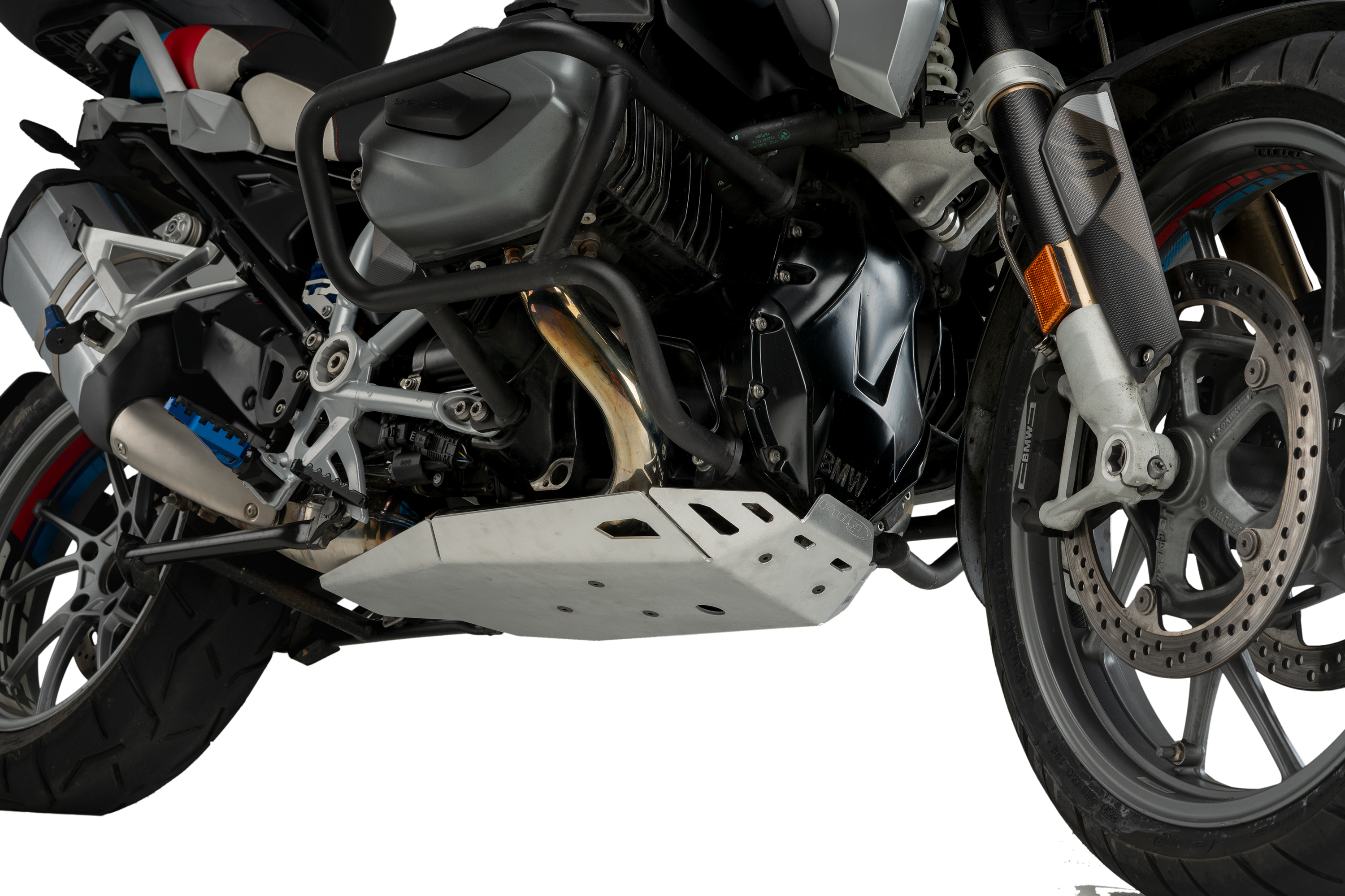 Studiato specificatamente per la BMW R 1250 GS, il suo montaggio protegge pregiate zone sensibili ai danni e agli urti di sassi e fango, come il basamento e il raccordo dei collettori, rendendolo un accessorio molto pratico se si considera l'Offroad possibilità offerte dal maxitrail tedesco.