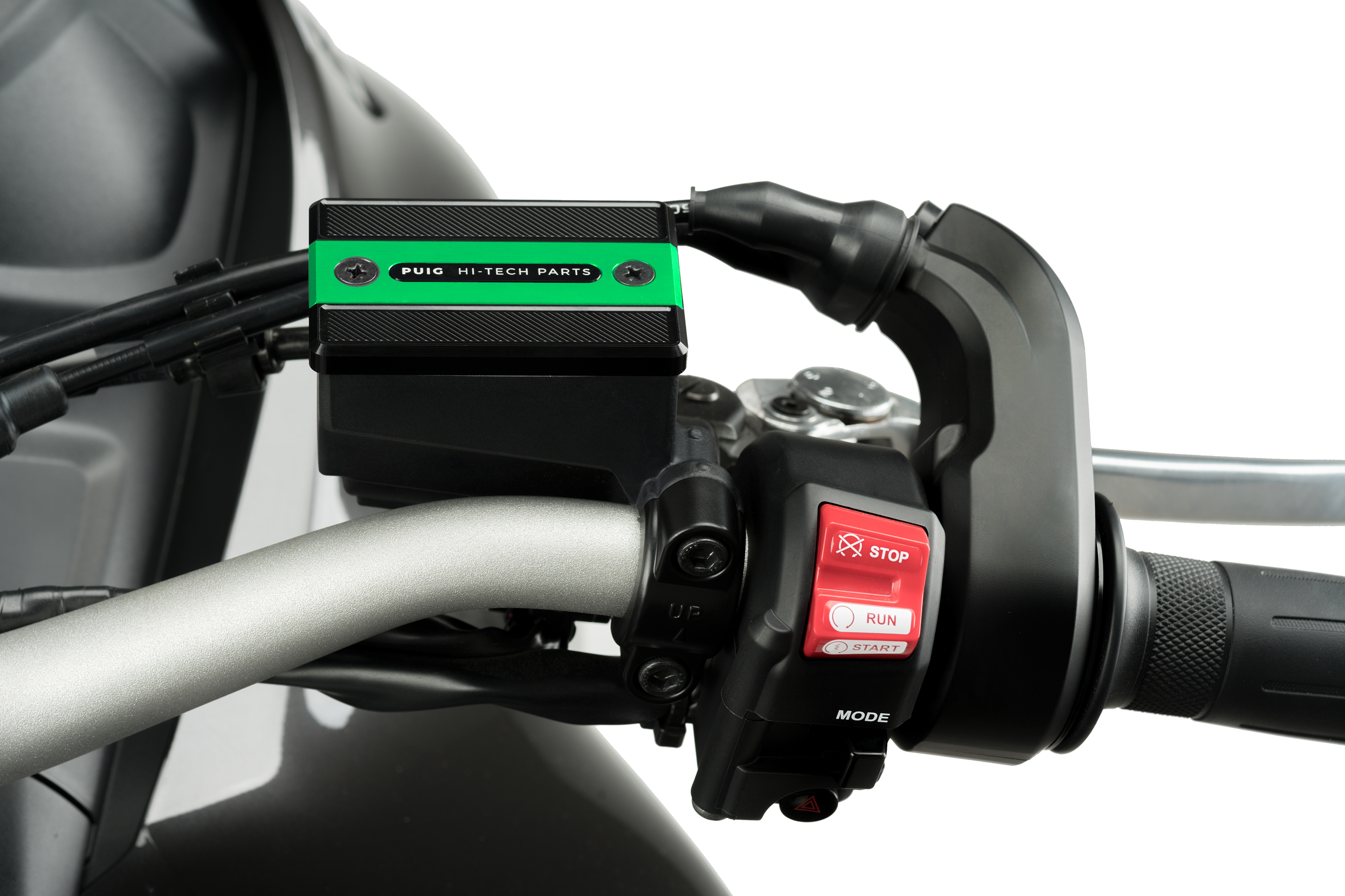 Il produttore catalano presenta il suo nuovo tappo per il serbatoio del liquido dei freni Puig ricavato da un blocco di alluminio, fornendo una maggiore protezione al serbatoio stesso, e anodizzato in diversi colori per personalizzare la moto al massimo. Il tutto sotto l'esclusivo design hi-tech della Puig.